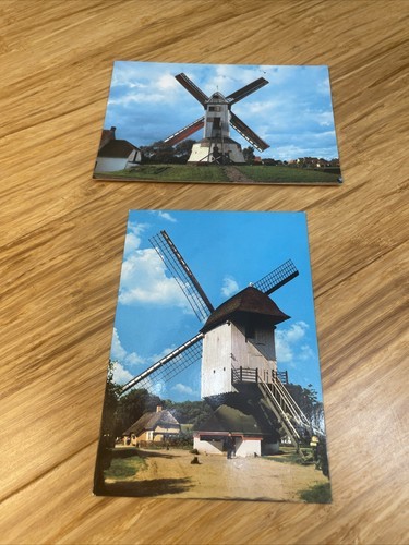 Vintage Lot of 2 Windmill Belgium Travel Souvenir Postcard KG JD