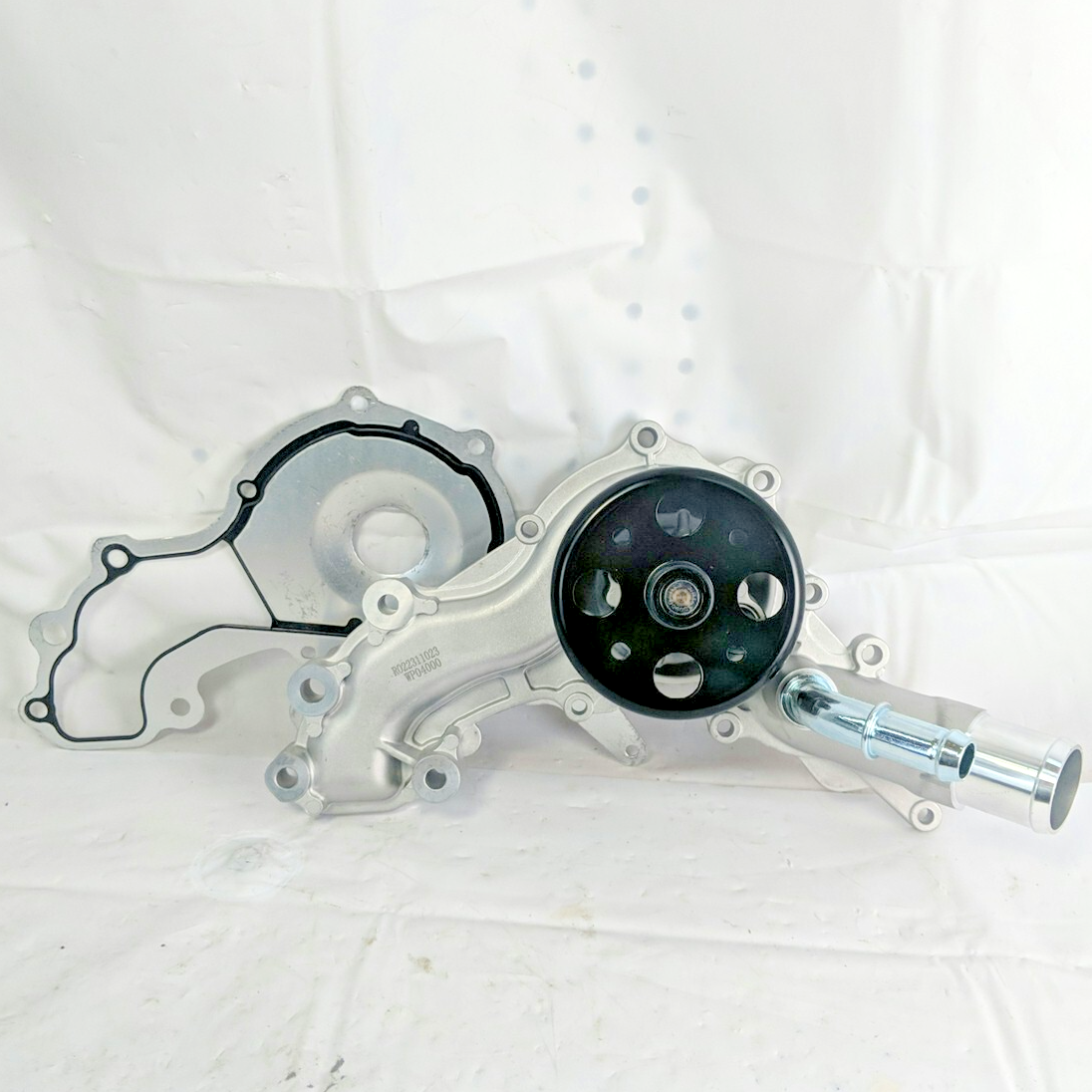 Exact item set is shown. New without original packaging. Aluminum water pump and gasket with steel pulley and 6 vane impeller. Gasket has some wear from handling, as shown. Made in China. No returns if installed. Please review our business policies in our store for information regarding returns, shipping and warranties.