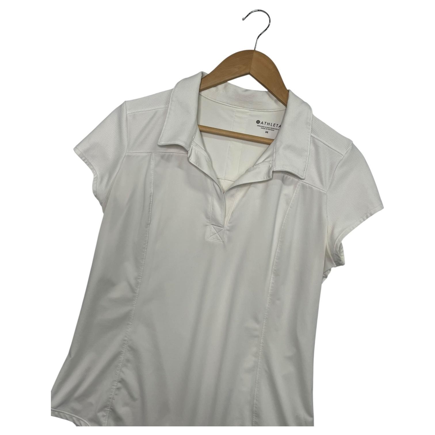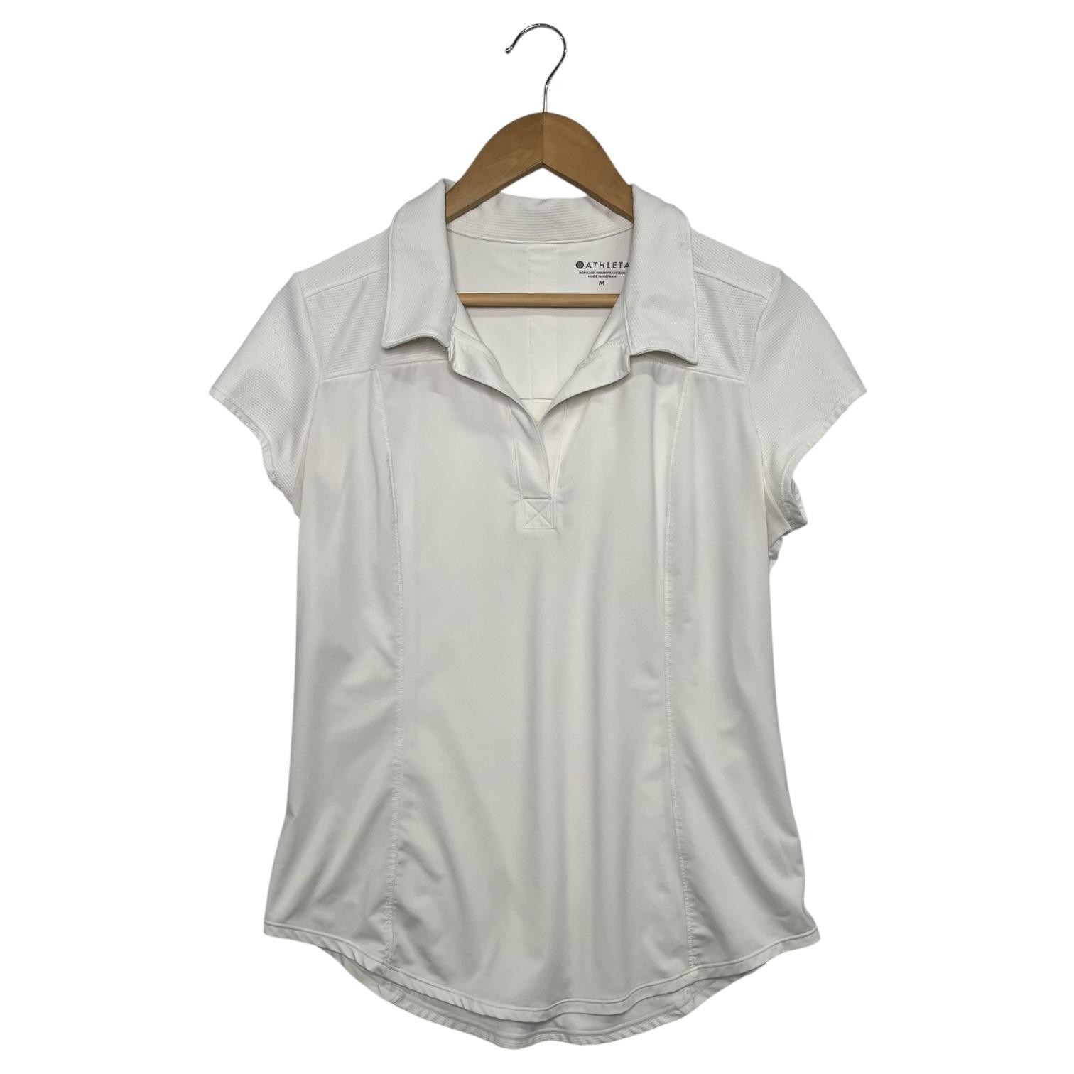 Athleta Shirt Womens Medium White Collared Polo Athletic Golf Tennis Stretch