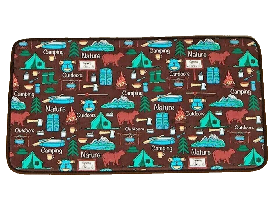 Camping Memory Foam Bath Rug Bears Fishing Tents Canoes Camp Fire on Brown Mat