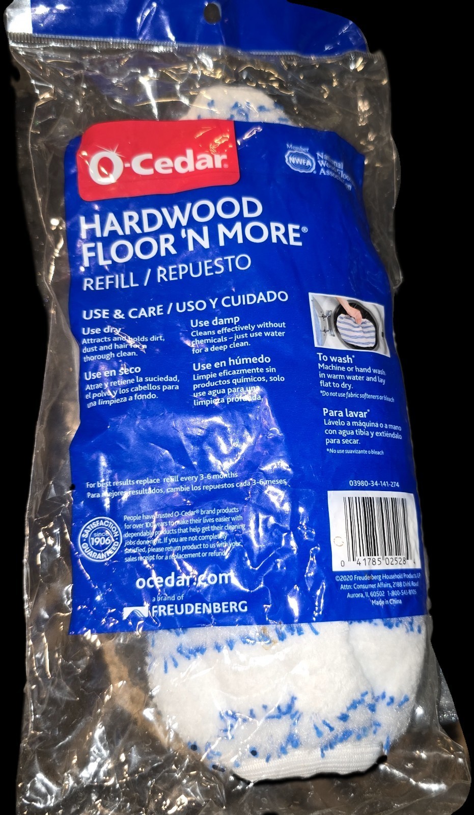 O-Cedar Hardwood Floor "N More Microfiber Mop Refill, White /Blue