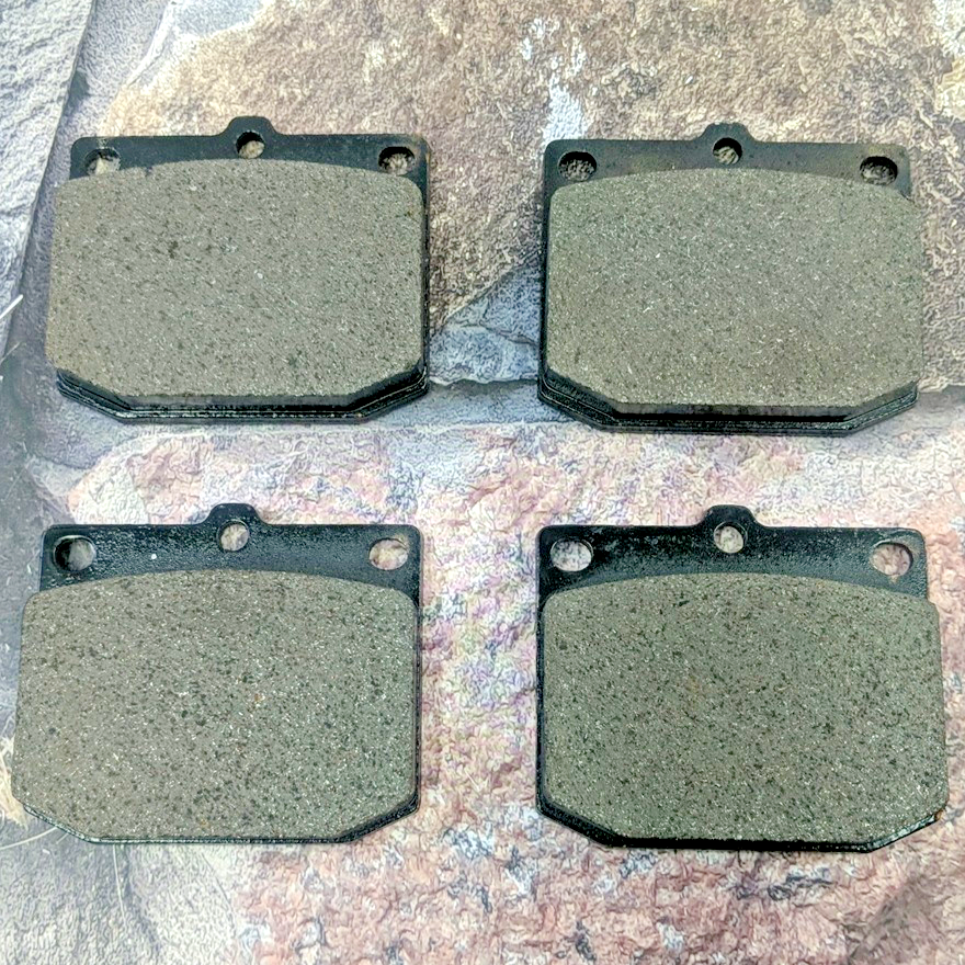 The Canstop CS5NA D57 Brake Pad Set is designed for vintage Nissan 240Z, 260Z, and 280Z models, featuring semi-metallic material for reliable braking performance. This set includes four brake pads suitable for the front left and right placements on the vehicle. The pads offer quiet operation and meet OE/OEM part numbers such as 41060U8725 and 41060B9526. Manufactured in Canada, these NOS (New Old Stock) brake pads provide a quality replacement option for maintaining the braking system of these classic Nissan vehicles.