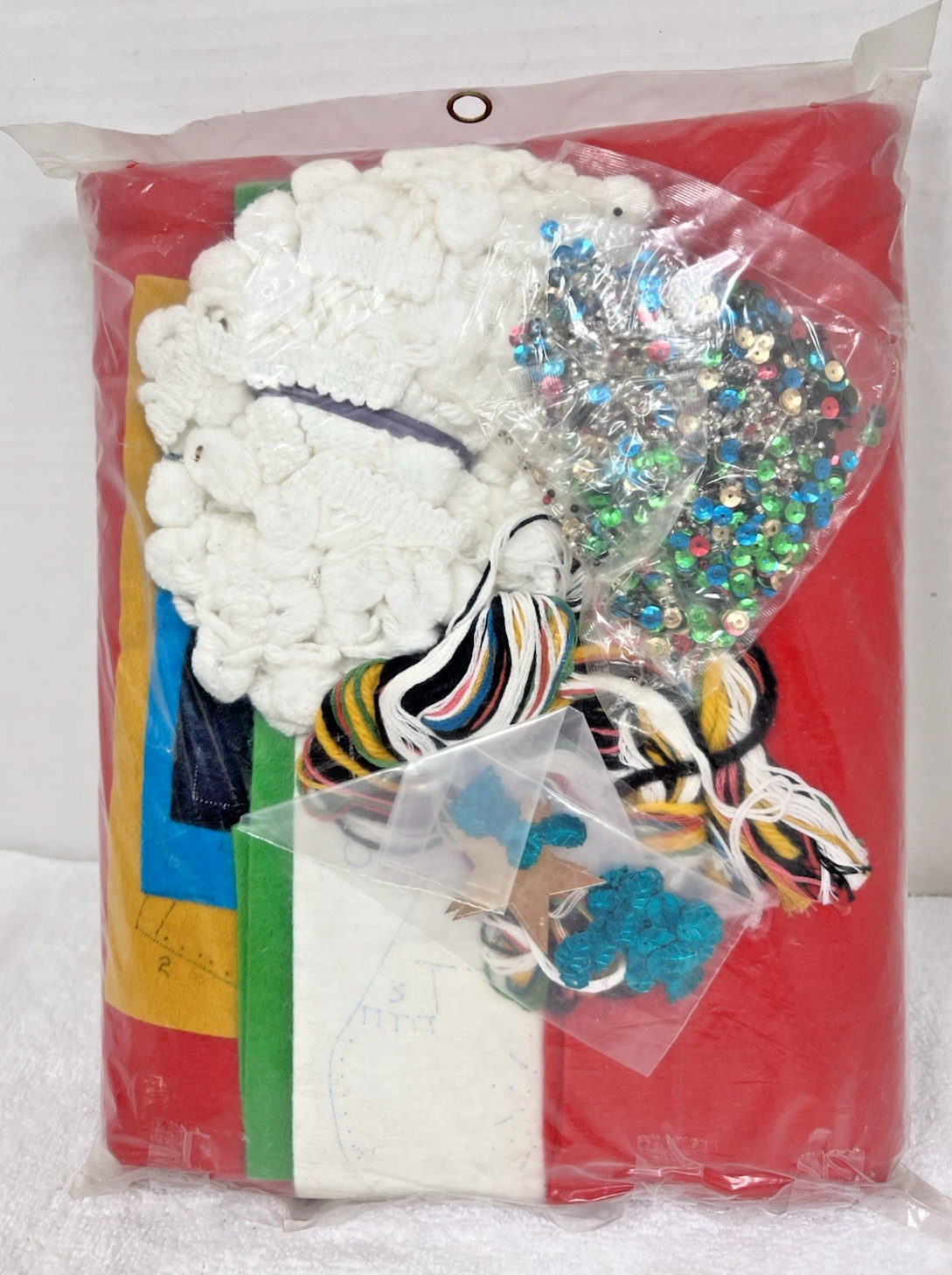 OLD Bucilla Christmas Needlecraft Frosty Friends Tree Skirt 8615 Jeweled Sequin well not used but not from the store also the bag burst open at the bottom we did tape it shut but it has not been out of the package