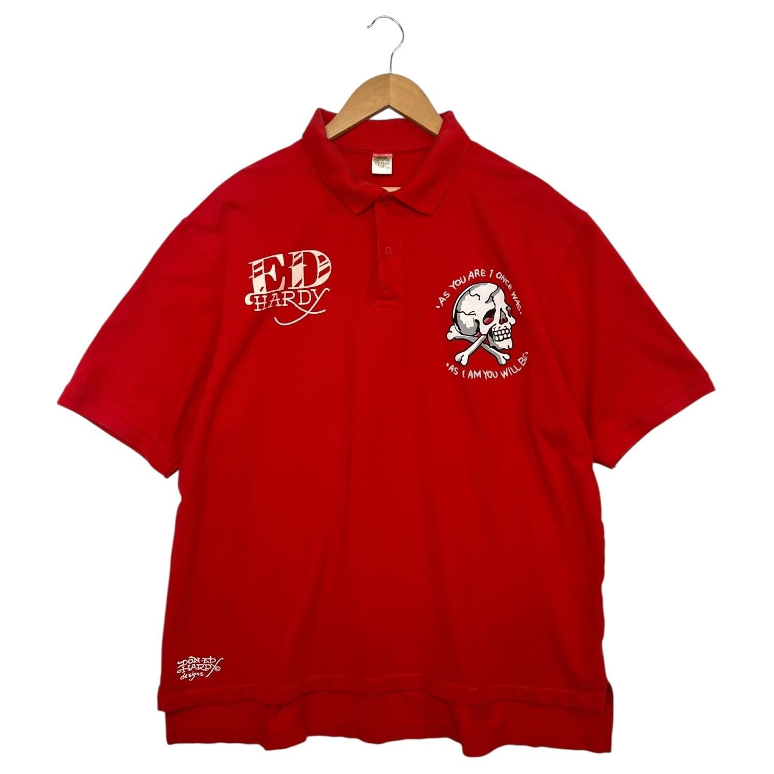Vintage Ed Hardy Polo Shirt Mens 4XL Red Skull Graphic Christian Audigier Y2K