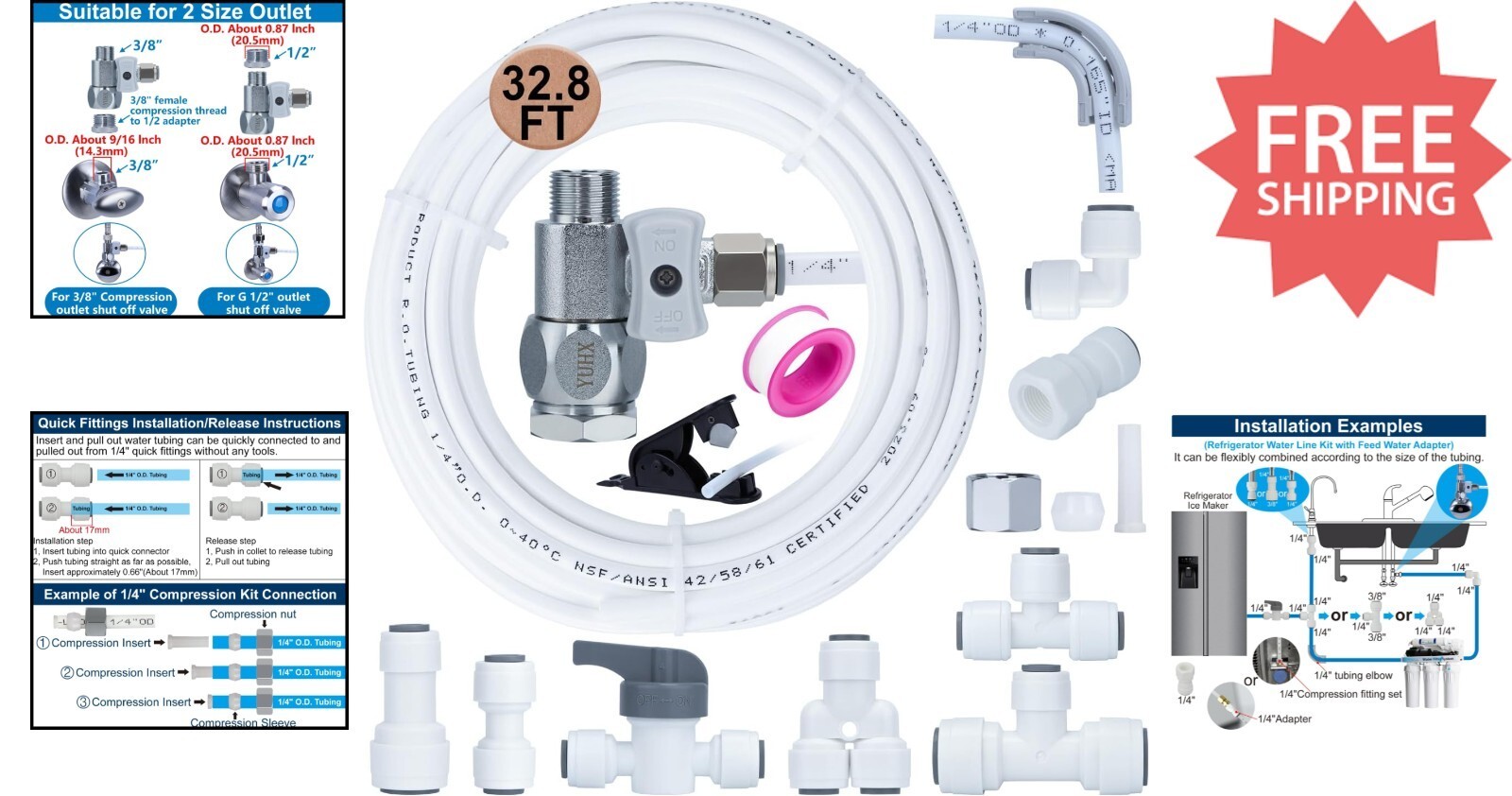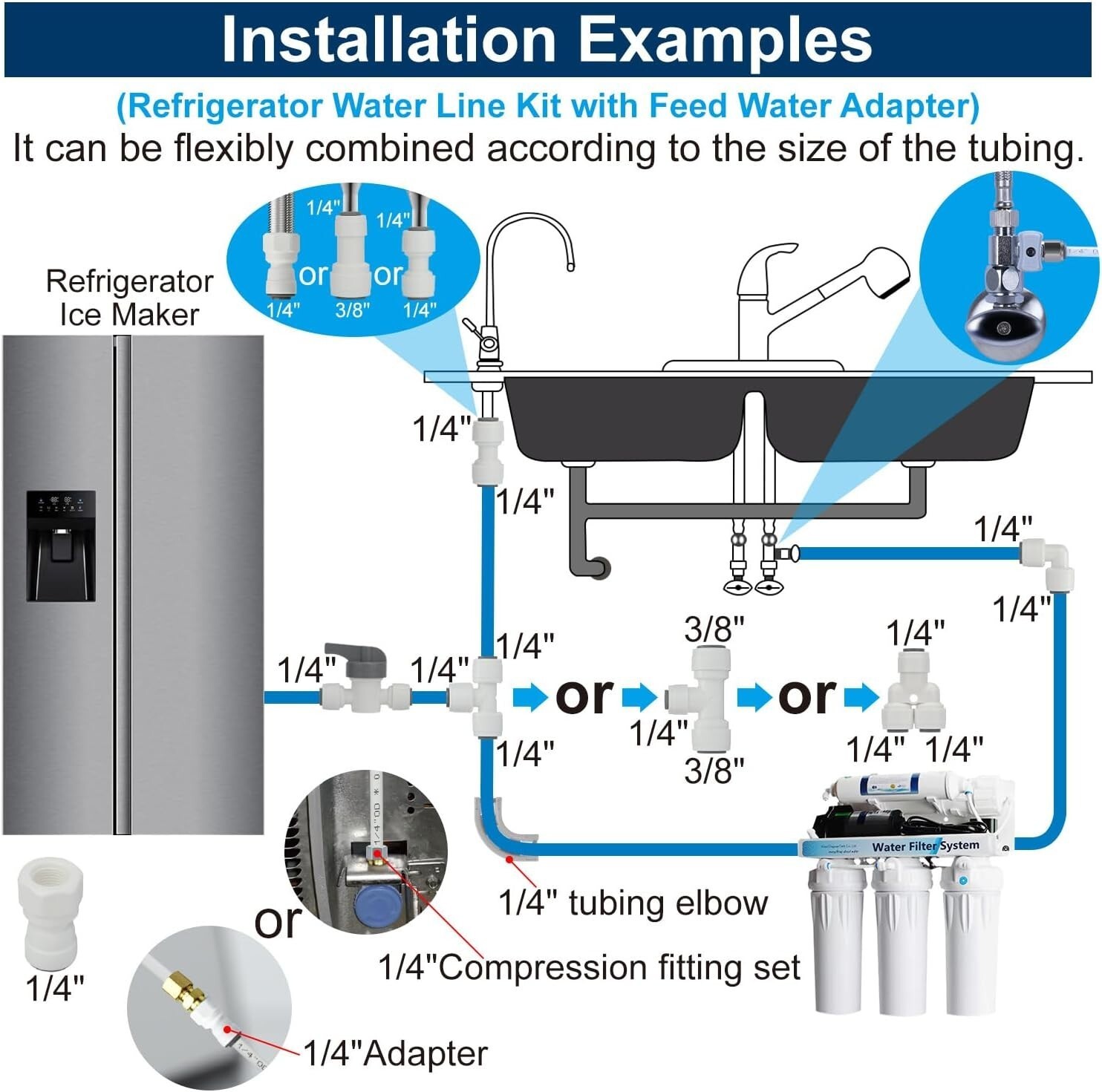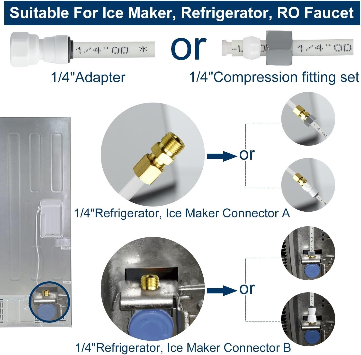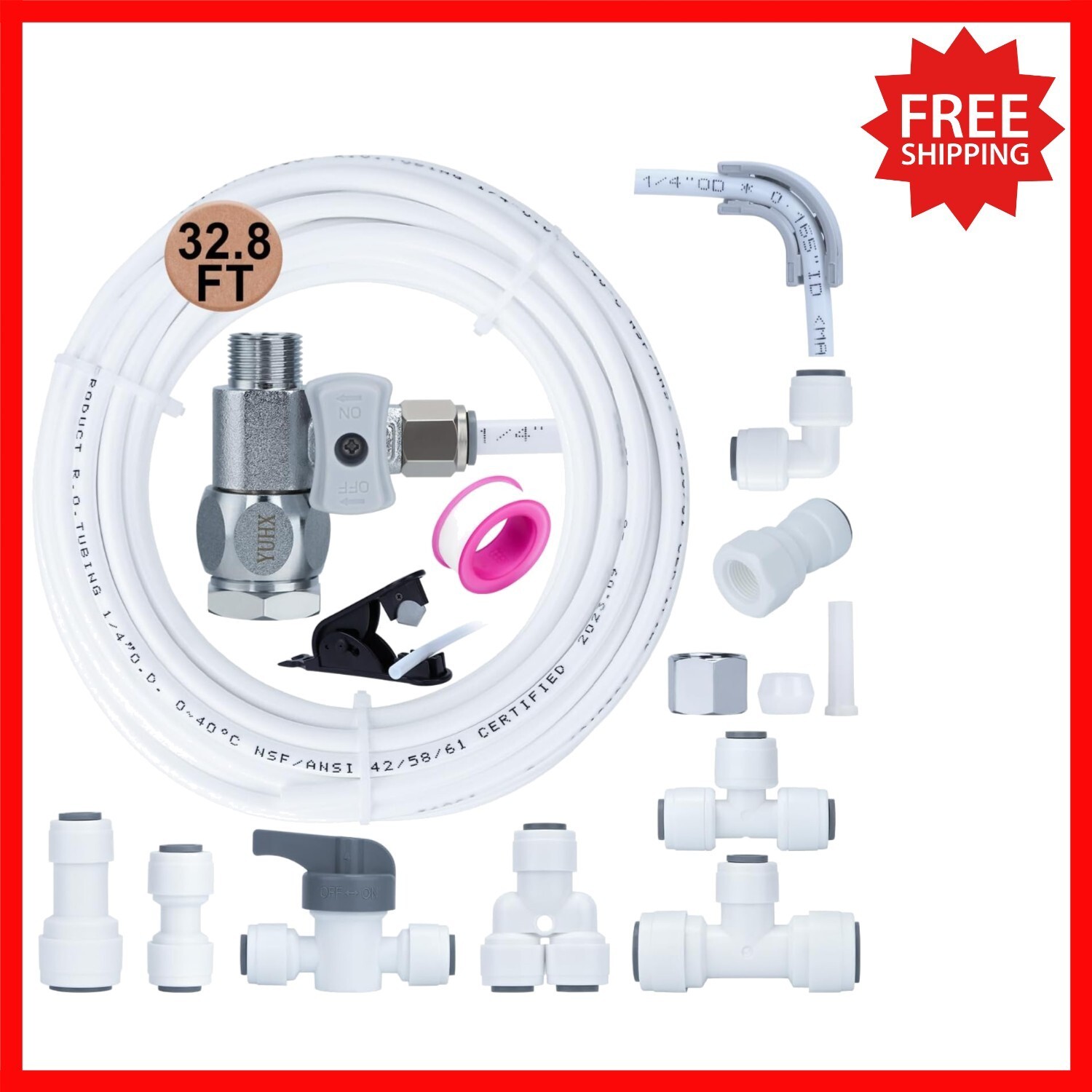 Upgrade your home water installation with our versatile 1/4 water line kit. Designed for ease of use, it requires no drilling?simply connect from your existing shut-off valve under the kitchen sink. Compatible with a wide range of devices including filtration systems, refrigerators, and ice makers, it features NSF certified BPA-free tubing for safe drinking water. The kit fits both 1/2" and 3/8" angle stop valves and is suitable for most major refrigerator brands like GE, LG, Samsung, and more. With included professional-grade fittings and a straightforward installation process, enjoy reliable, leak-proof connections without the need for special tools. Perfect for DIY enthusiasts seeking a quick, secure, and maintenance-free solution for clean water.