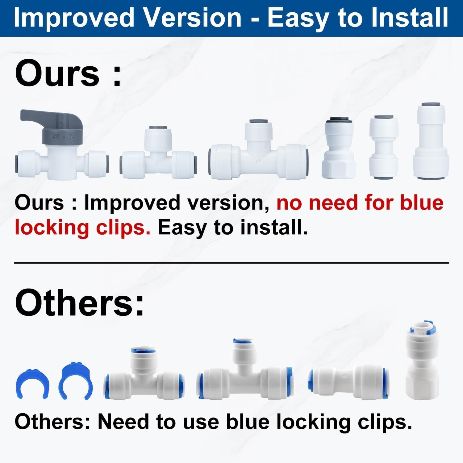 Features: NSF Certified,No Drilling Required,Wide Range of Applicable,Potable Drinking Water,Odorless and Tasteless,Effective Leakage Prevention,Easy Installation,Compatible with Reverse Osmosis Systems