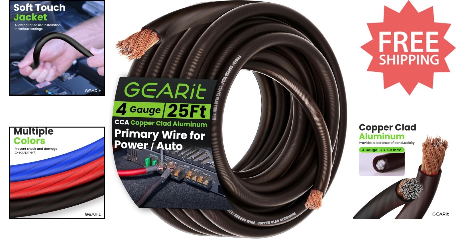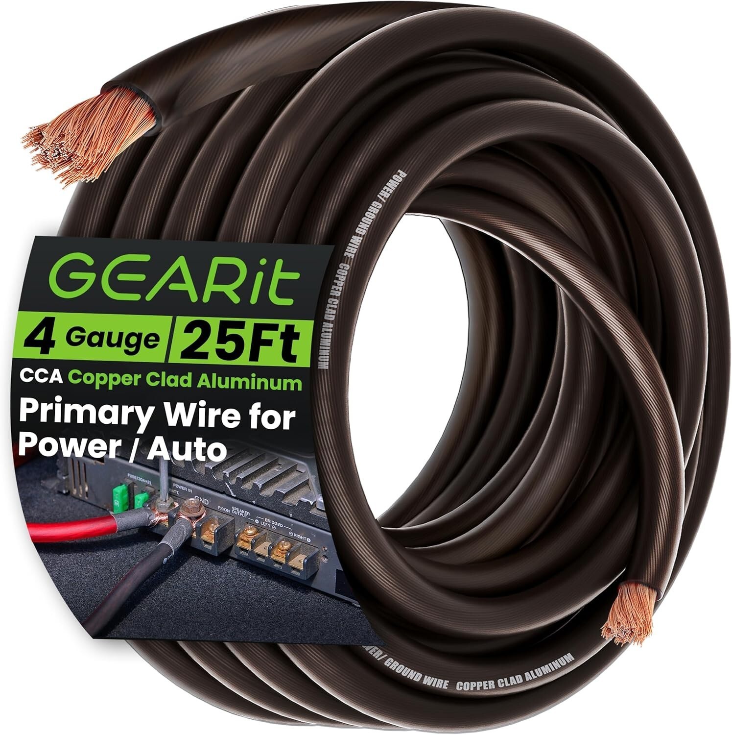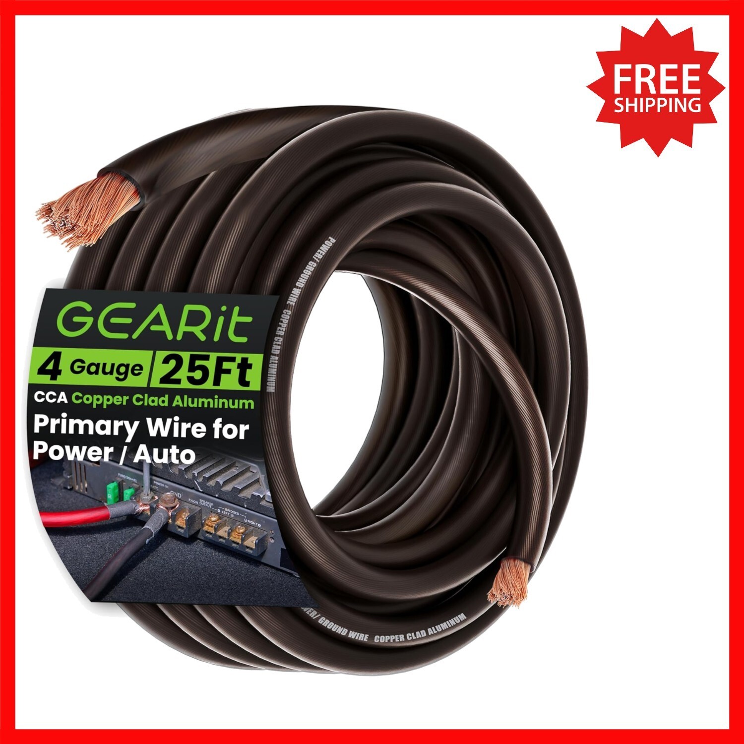 25ft 4 Gauge Copper Clad Aluminum Wire - Ideal for Car Audio, Grounding & More