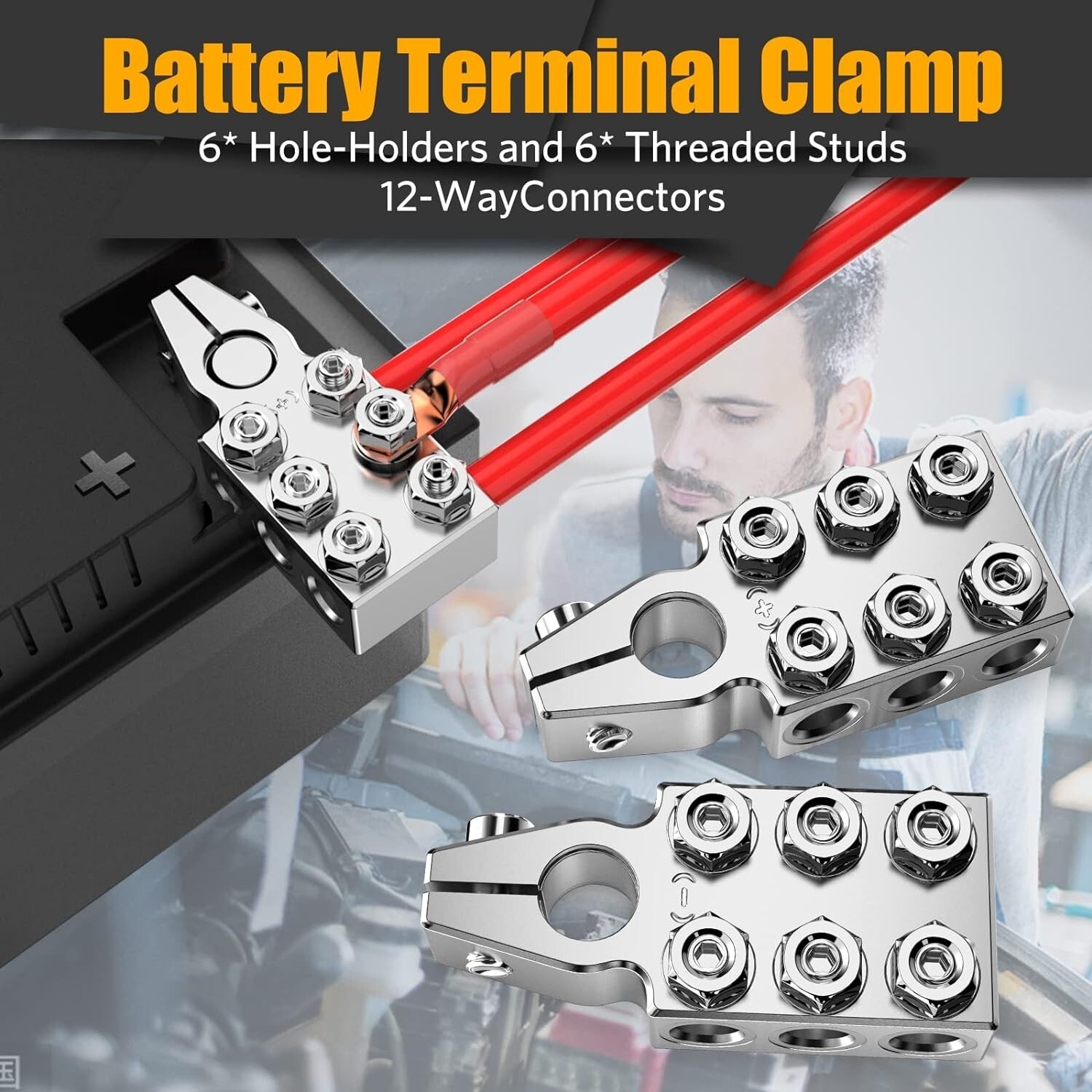 12-Way Car Battery Terminals for SAE/DIN/EN Tapered Posts - Corrosion Resistant