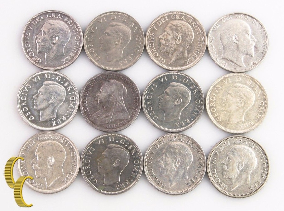 1900-1951 Grande-Bretagne 1 lot de shilling (VF-bu, 12 pieces) Victoria Edward George