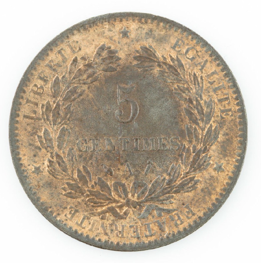 1887 France 5 centimes Coin Red / Brown KM # 821.1