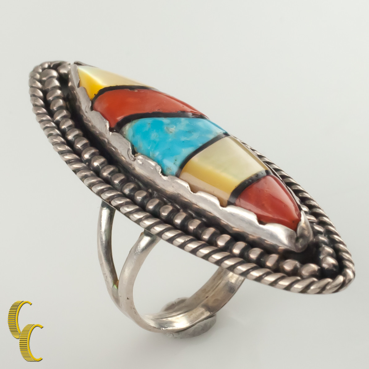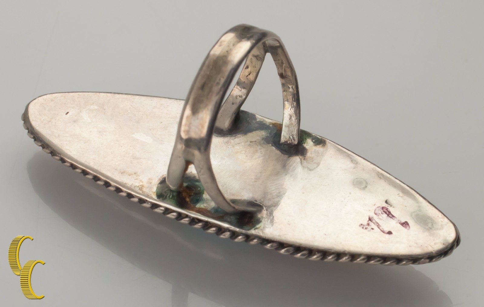 Magnifique anneau en argent avec plaque d'incrustation lapidaire