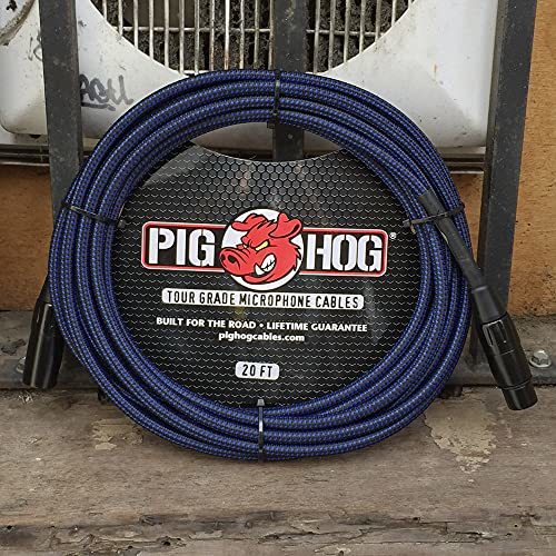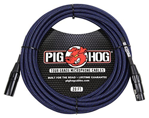 Pig Hog PHM20BBL Black/Blue Woven High Performance XLR Microphone Cable, 20 Feet