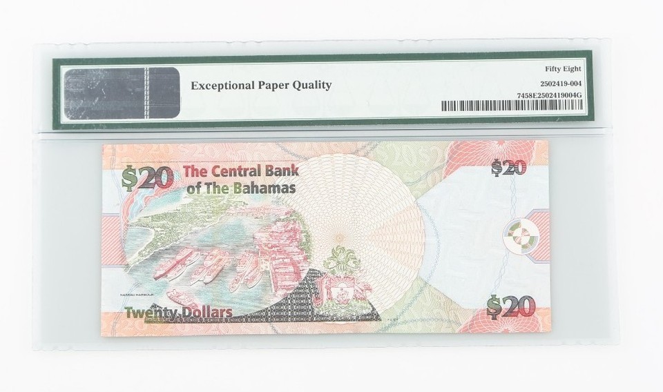 2006 Bahamas 20 Dollar Choice AU-58 EPQ Central Bank Out of Circulation P #74...