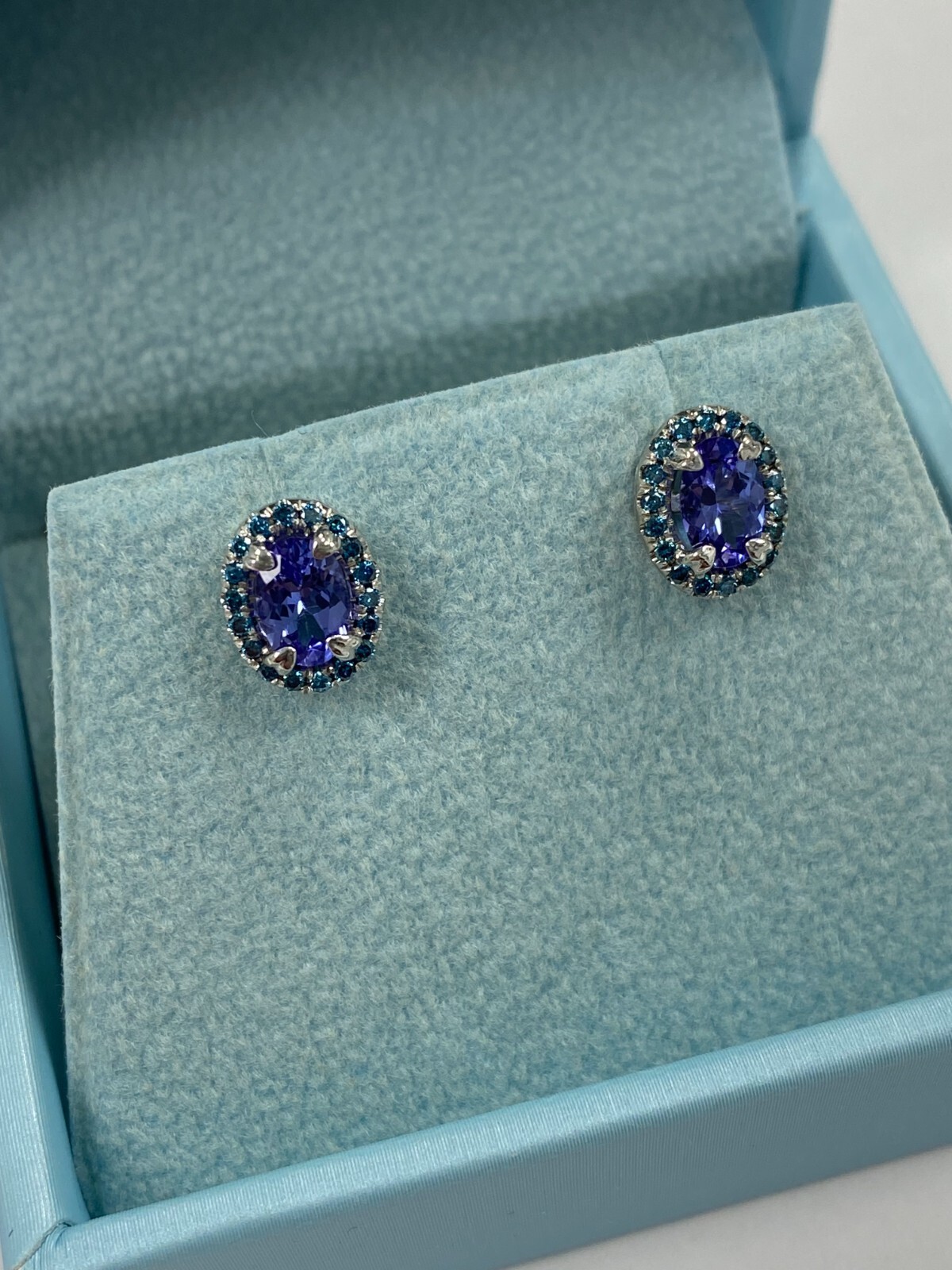 1 Karat Oval Violett Blau Tansanit Halo Diamant Ohrstecker 14k Weiss Gold