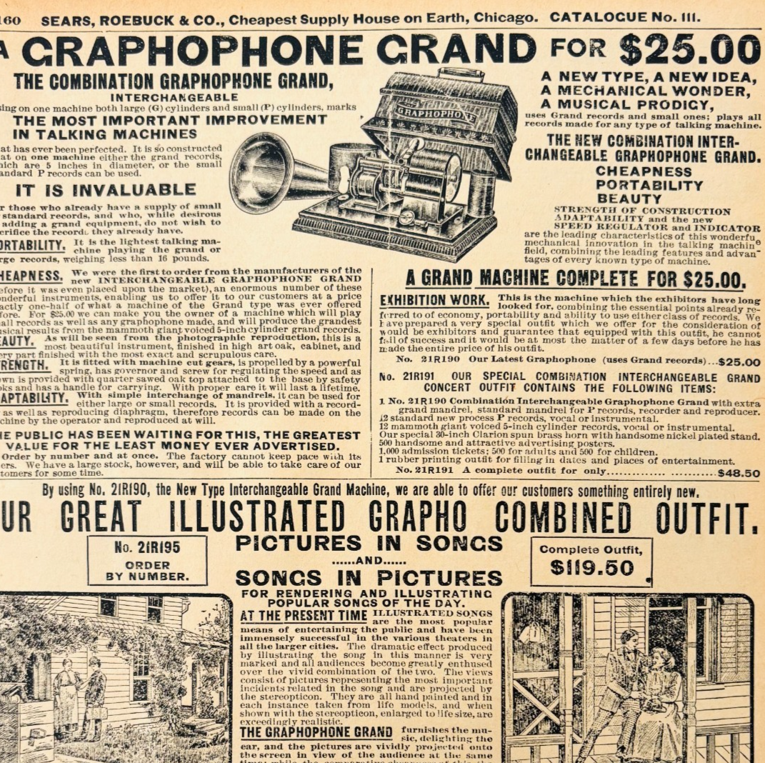 1969 Graphophone Grand 1901 Repro Advertisement Sears Radio Music DWU16H