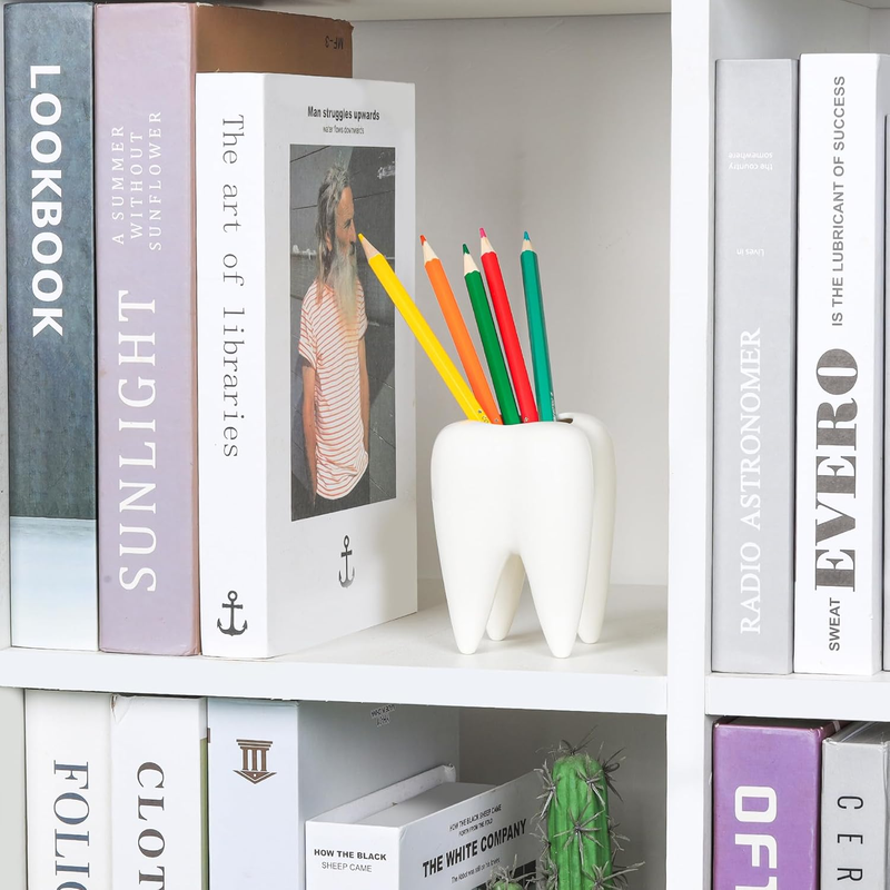 Cute Tooth Shape: Embrace the enchanting allure of our tooth-shaped ceramic pen holder, meticulously crafted from robust ceramic material; Its enduring strength guarantees a reliable desk companion, suitable for any office, home, or school setting