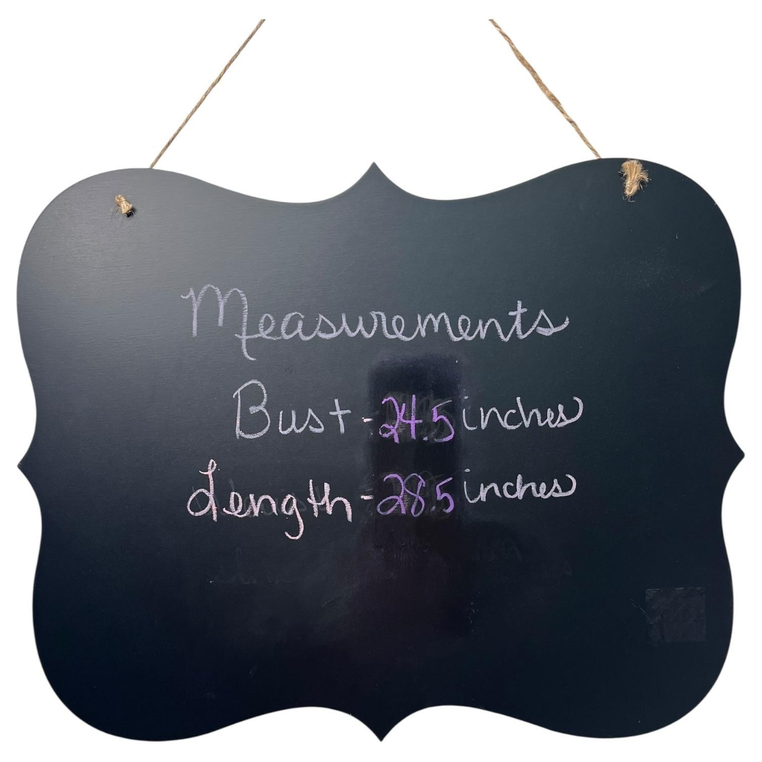 Measurements: Bust 27.5 inches; Length 28.5 inches