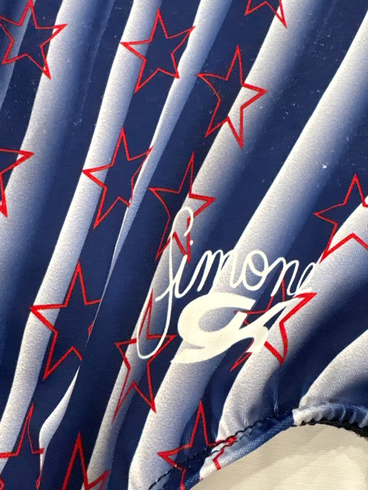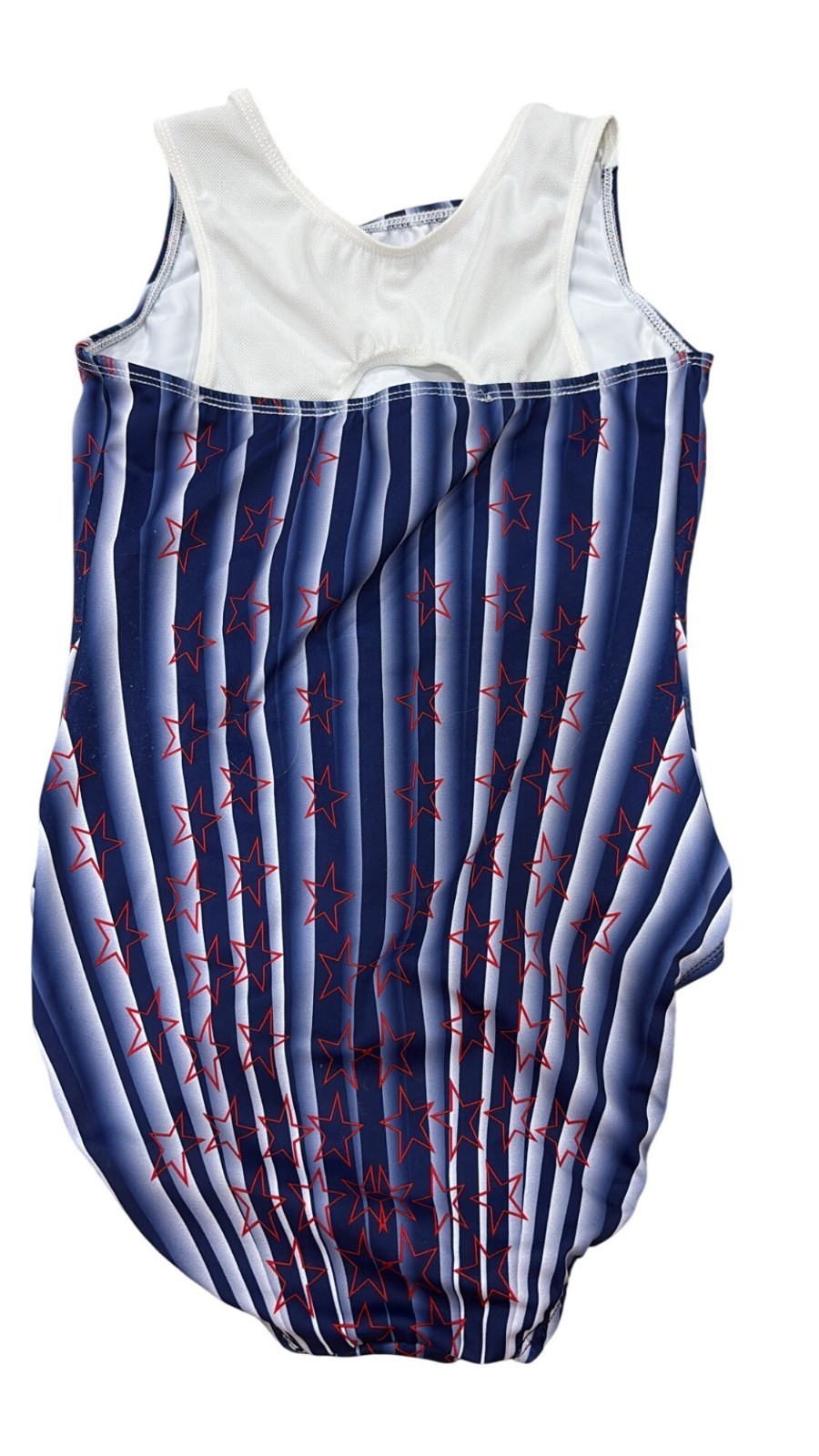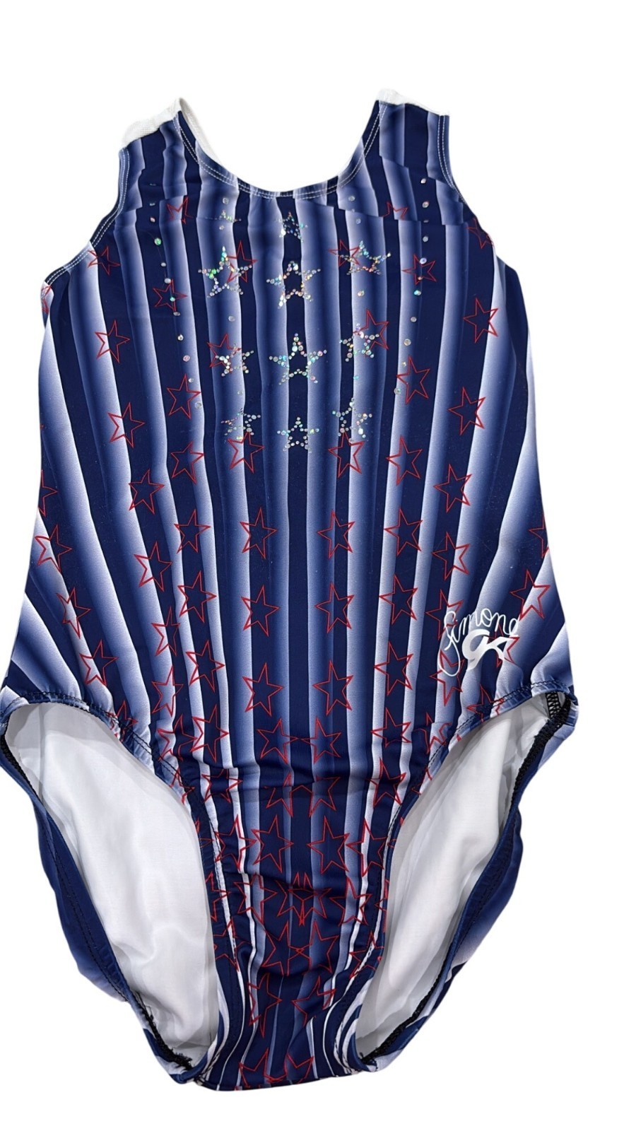 GK Elite Simone Biles Gymnastics Leotard AS Blue Red Star Stripe Pattern Olympic