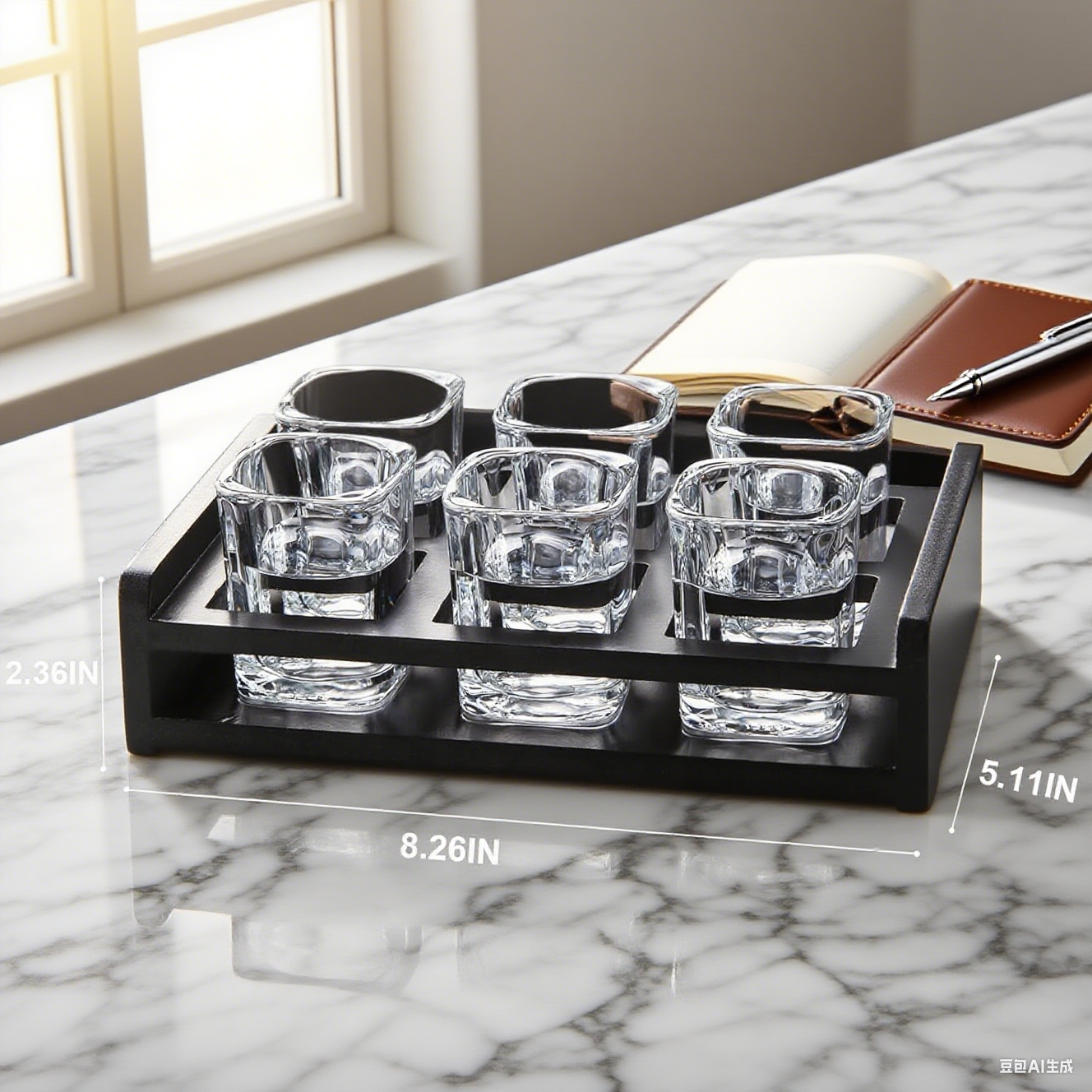 Our shot glasses are easy to clean. Square shot glasses are dishwasher safe, which will save you time. The black plastic shot glasses holder is not easy to accumulate dust and can be cleaned by gently wiping it with a rag.