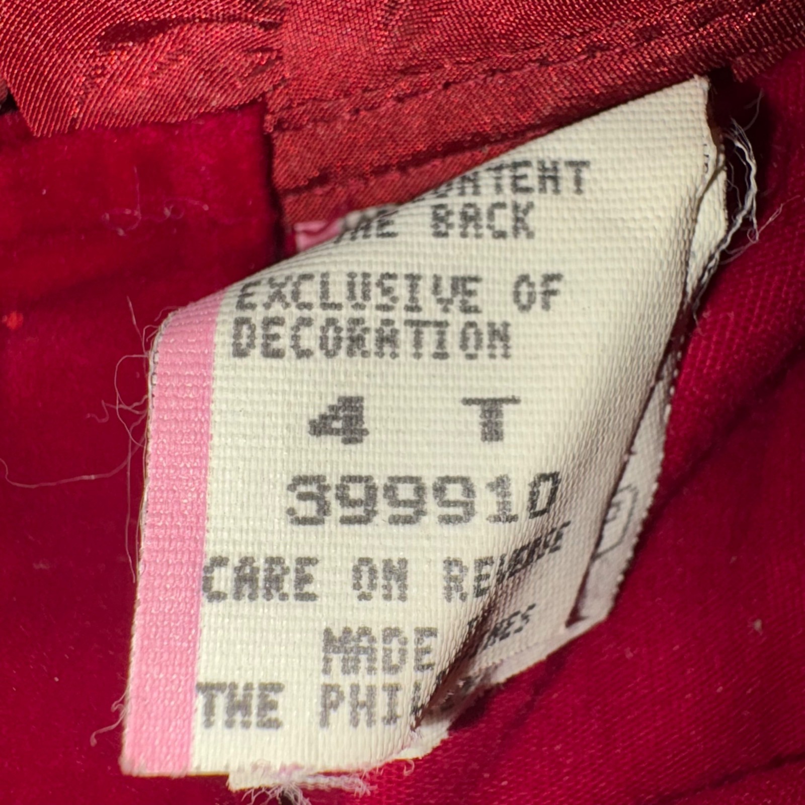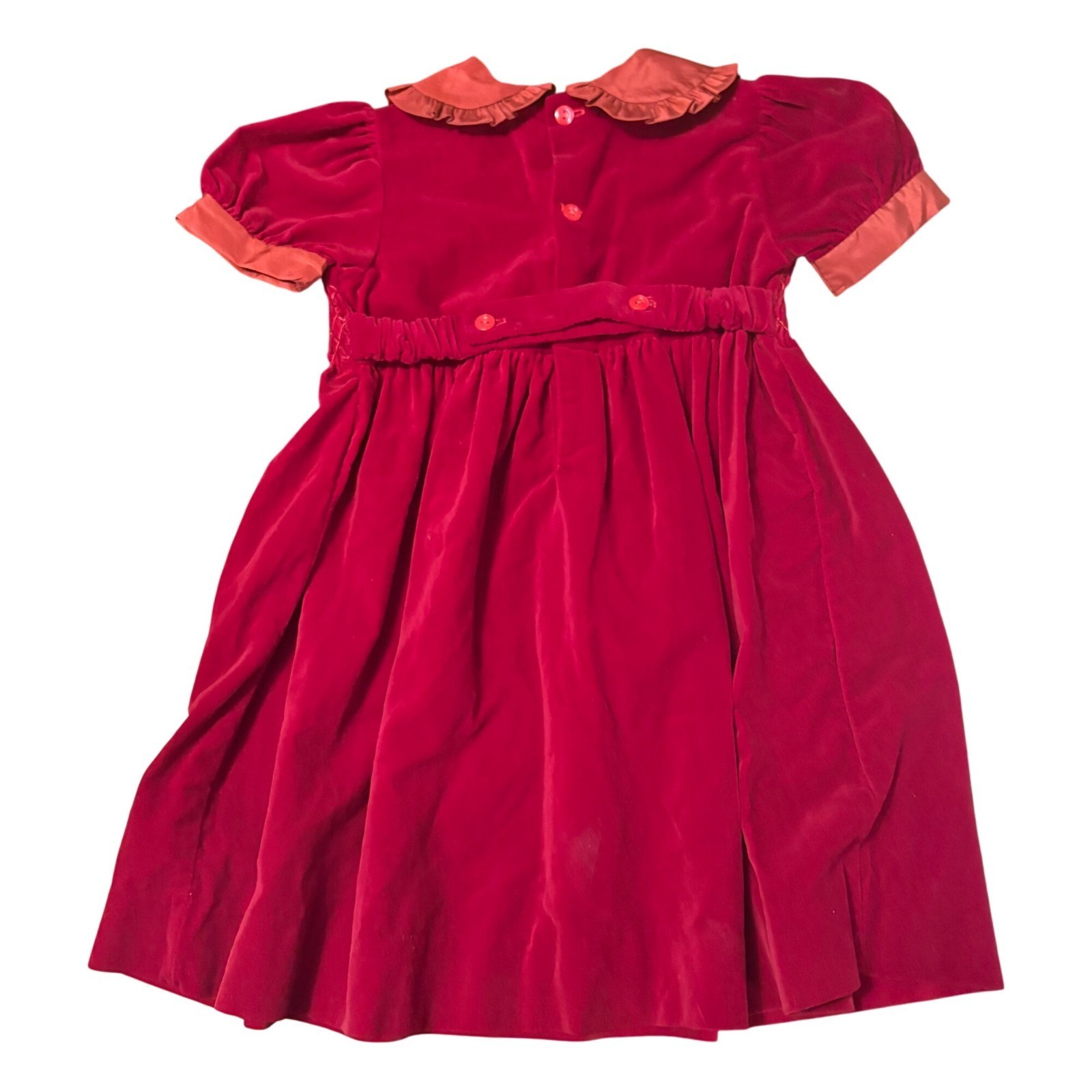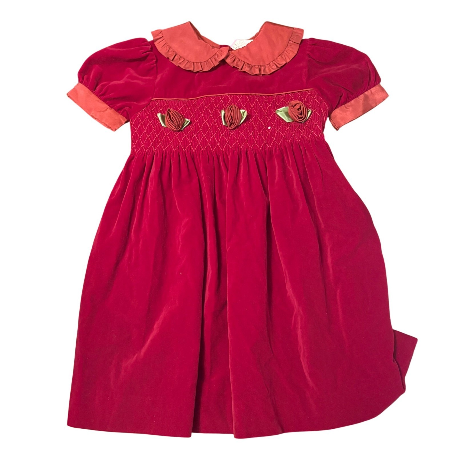 Vintage Red Velvet Girls Dress W/ Embroidered Roses & Peter Pan Collar Size 4T M