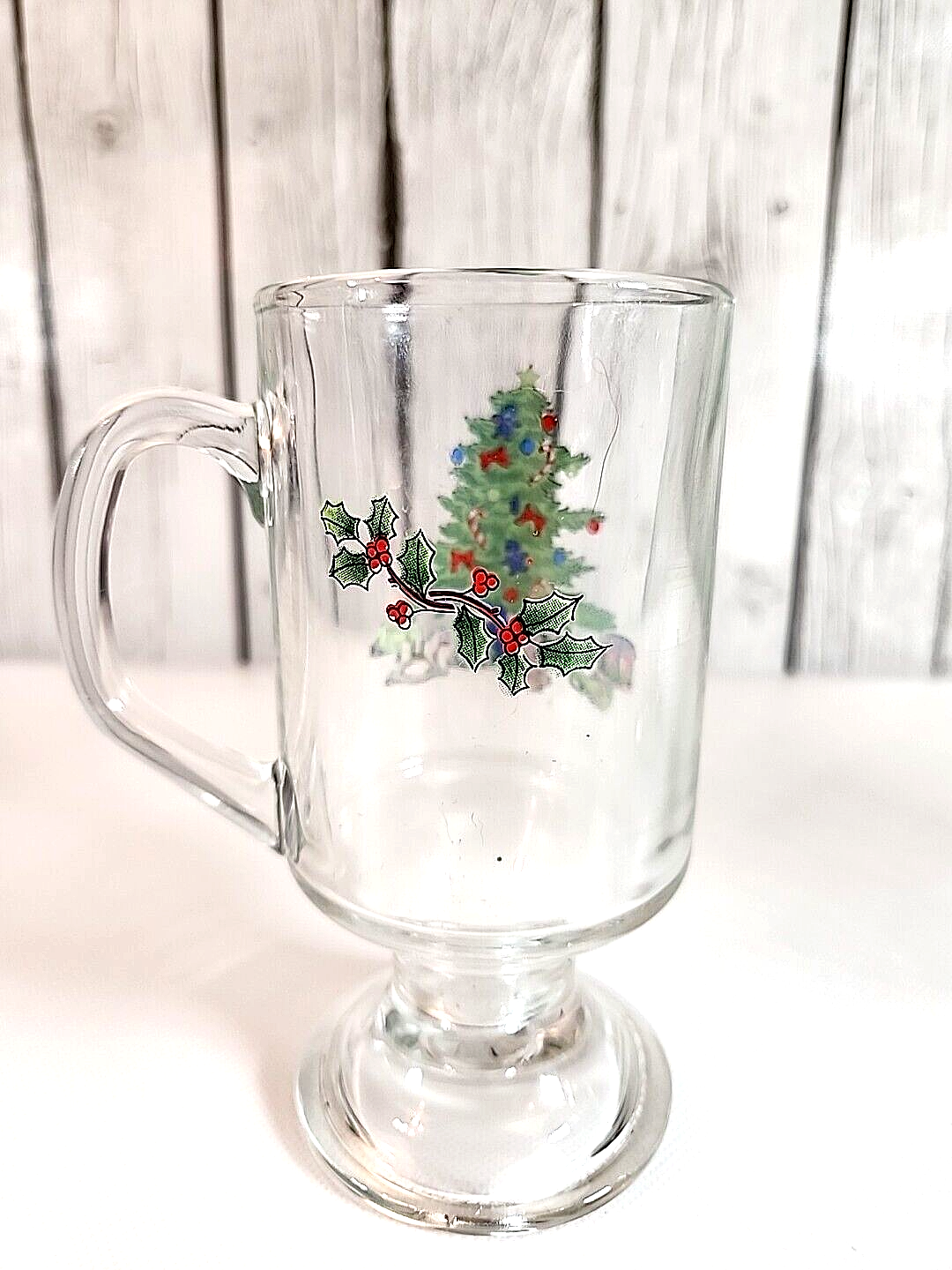 Luminarc Christmas Tree Holly Glass Mugs Set of 2 Vintage Holiday Hostess Gift
