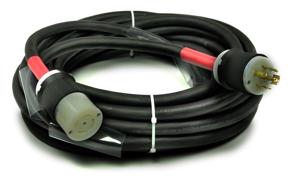 Heavy Duty Twist Lock Hubbel 4-prong AC power cable for L2130 inlet and outlet connectors. Hand Built with the best copper and connectors made and built to last for use in theatres, concerts, and recording studios. Commercial Grade AC cord great for powering your Distro power Pak components and L2130 AC stringer boxes.