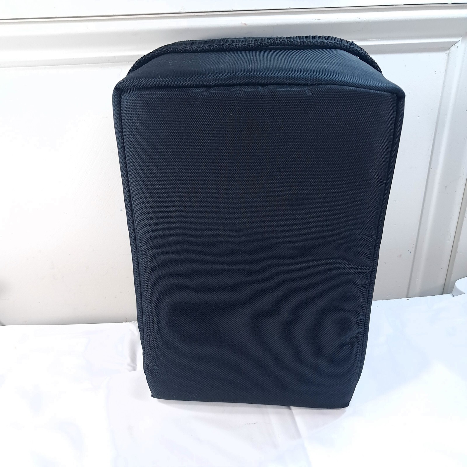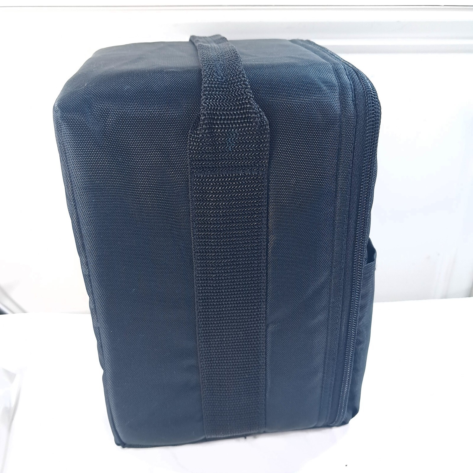 Holds 15 discs(14 slots, but one is a double slot) Hard Plastic inside with nylon cover, zipper closure and carrying handle. Very good condition.