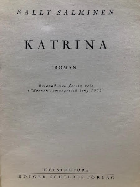 Extremely rare "Katrina" book from 1936, writer Sally Salminen, cover page illustrated by Tove Jansson's mother Signe Hammarsten-Jansson (HAM).