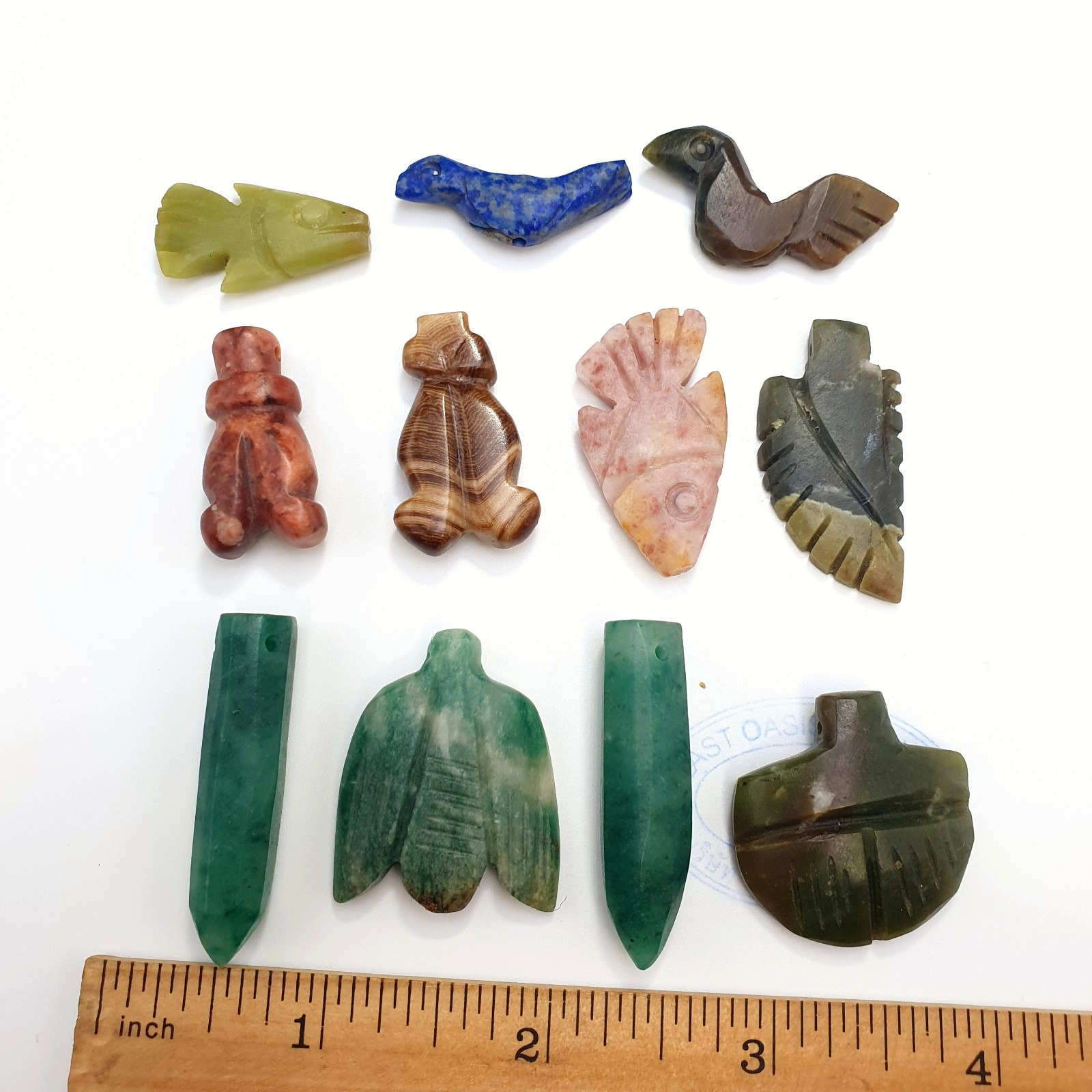 11 pcs Vintage Lapis Lazuli, jade Crystal Amazonite Stone Amulets Pendants
