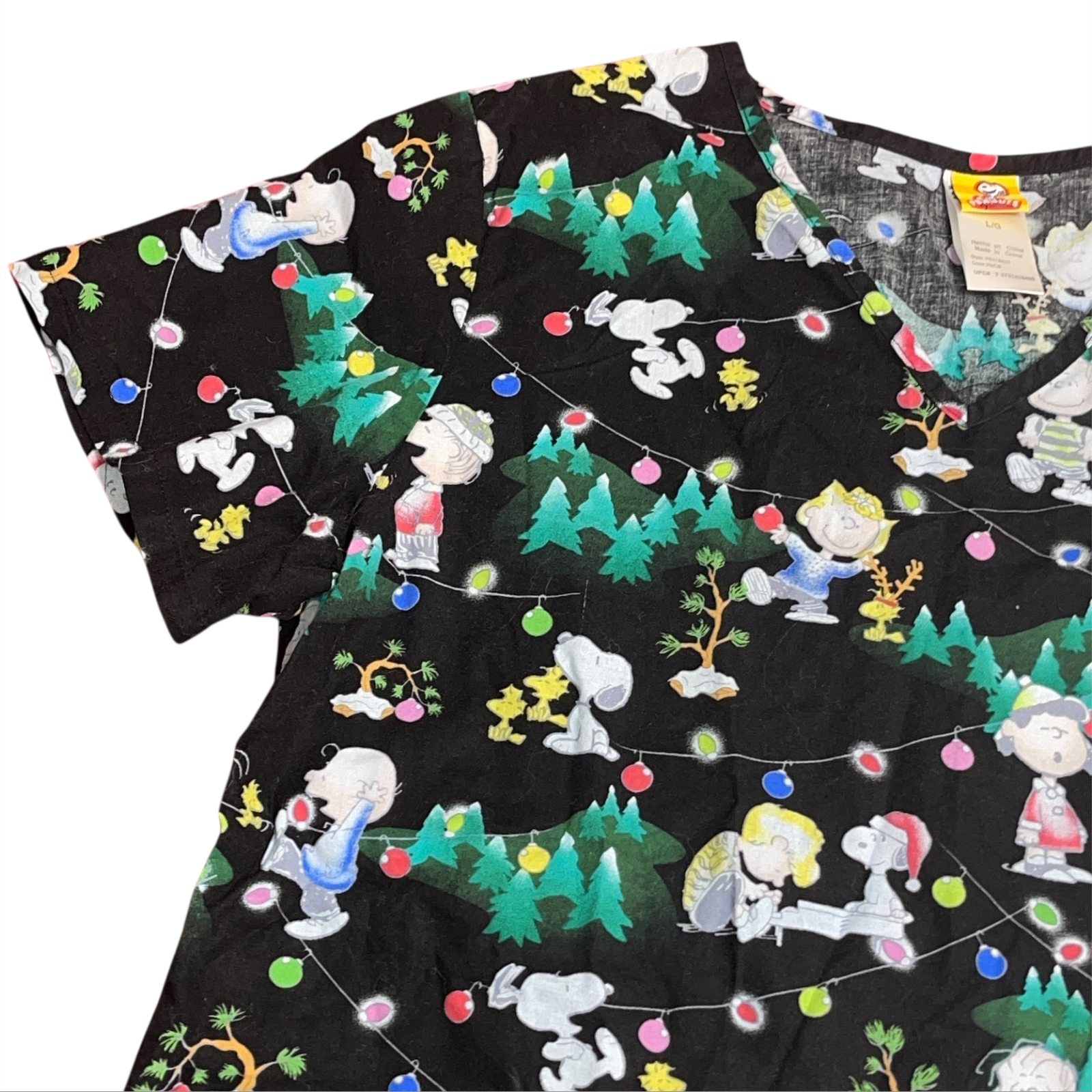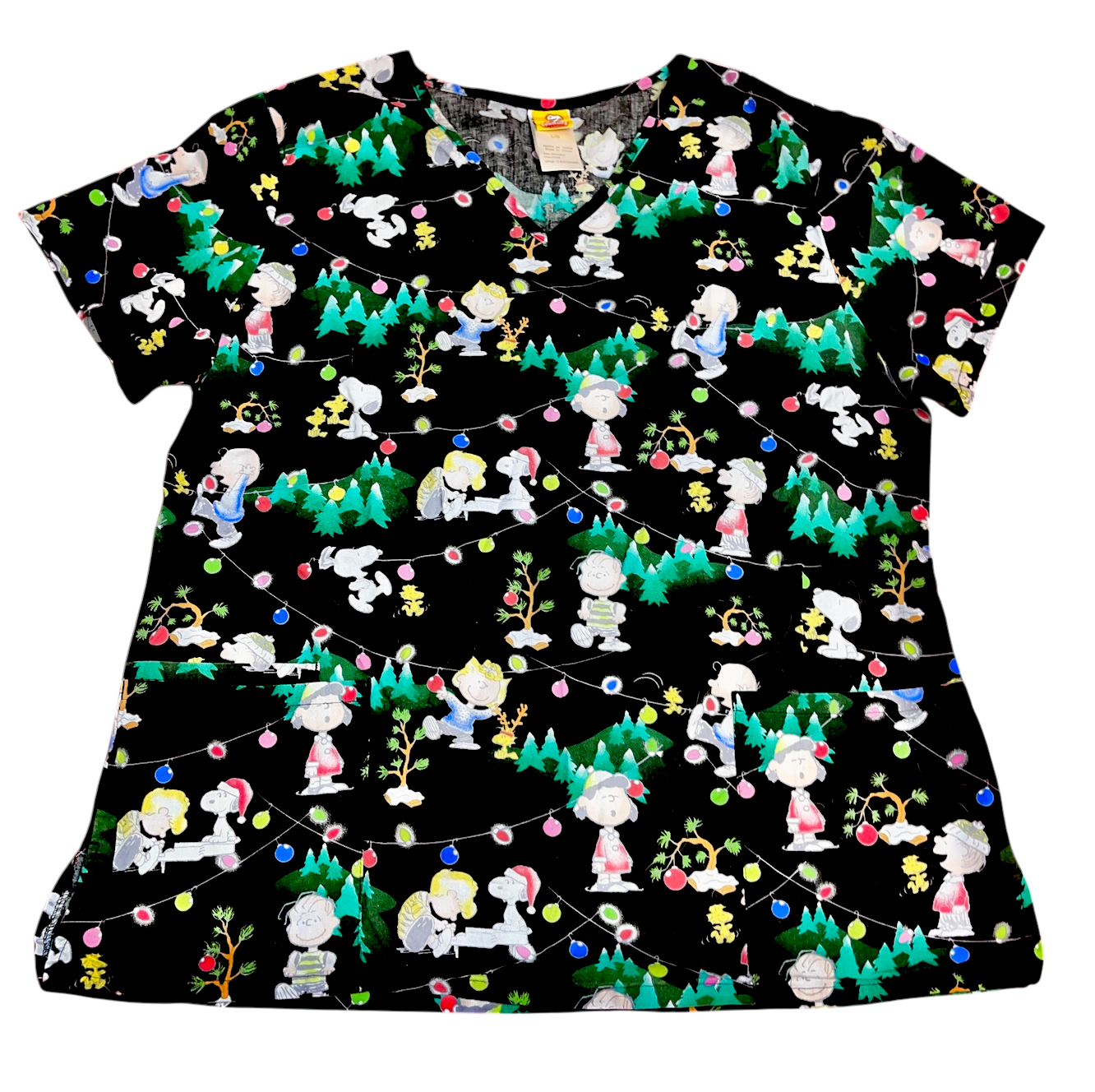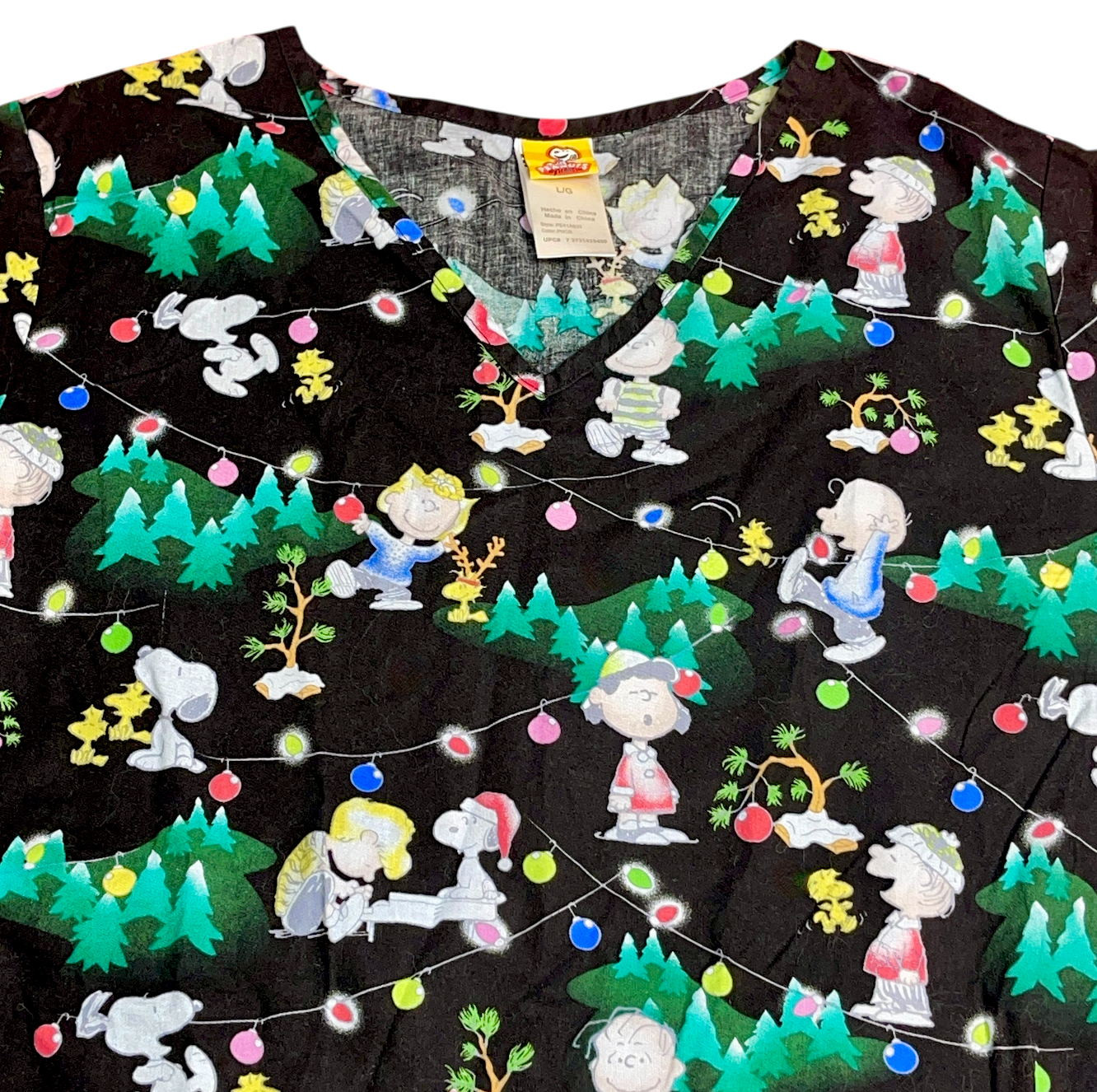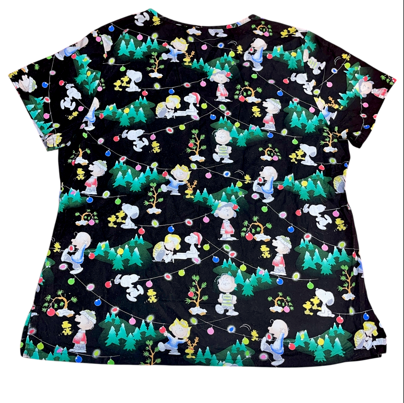 back. Super cute winter holiday scrub shirt with all your favorite Peanuts characters! Great for nurses, vets, techs, cafeteria, etc. Please see all photos. We are a smoke free, pet friendly home.
