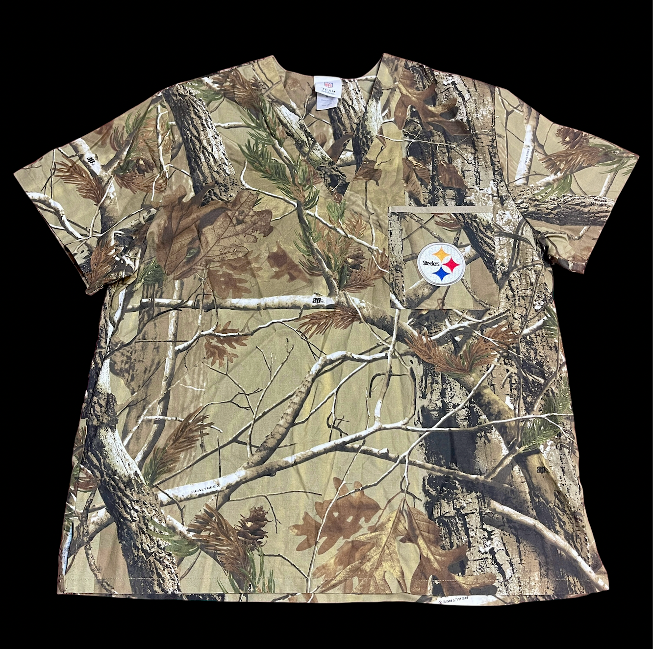 NFL Pittsburgh Steelers Scrub Dudz Top Realtree Camo Uniform Nurse Medium Cotton