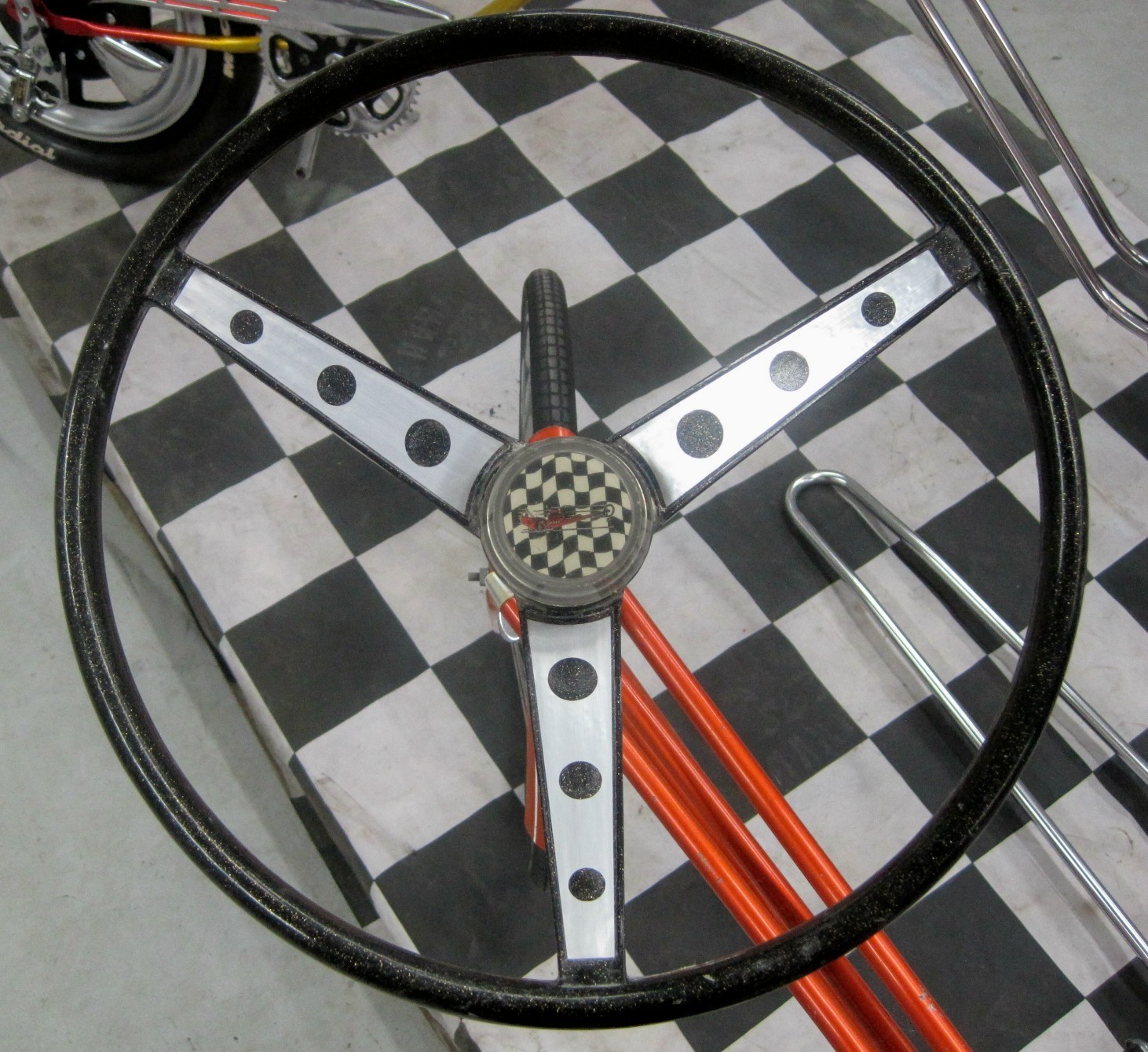Description: 1 Set of 3 Brushed Aluminum Steering Wheel decals. 1 per spoke. Pressure sensitive vinyl! 1 New Muscle Bike Bicycle Sticker. Stickers only! ------------------------------------------------------------------------------------