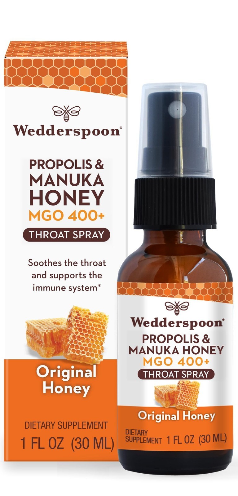 1/27 Wedderspoon Propolis and Manuka Honey Throat Spray, Original Honey, 1 Fl Oz