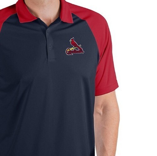 AntiguaMLB St Louis Cardinals Men's NovaRED Black 2xl NWT. 100% polyester solid interlock knit colorblock short sleeve polo with contrast sleeves and self fabric collar. Side slits and Antigua triangle patch at right cuff.
