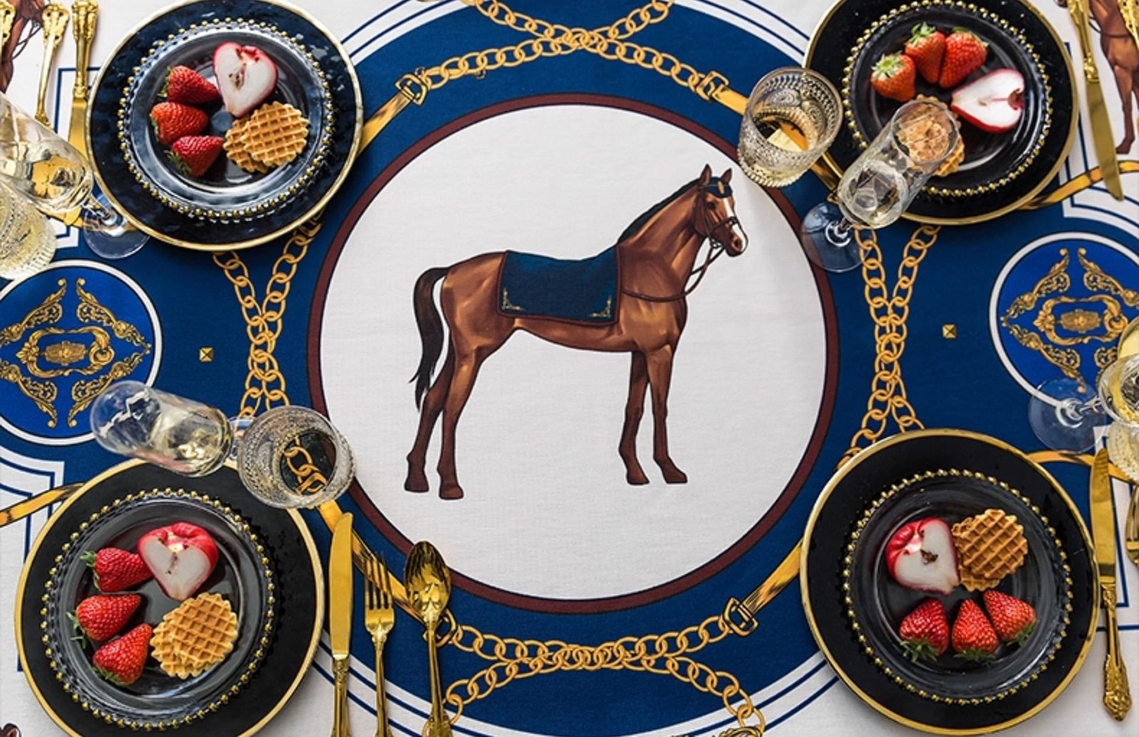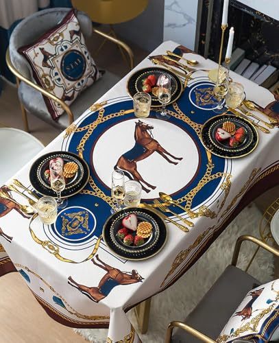 interoknack Luxury Horse Print Waterproof Tablecloth High-End Rectangular Acce