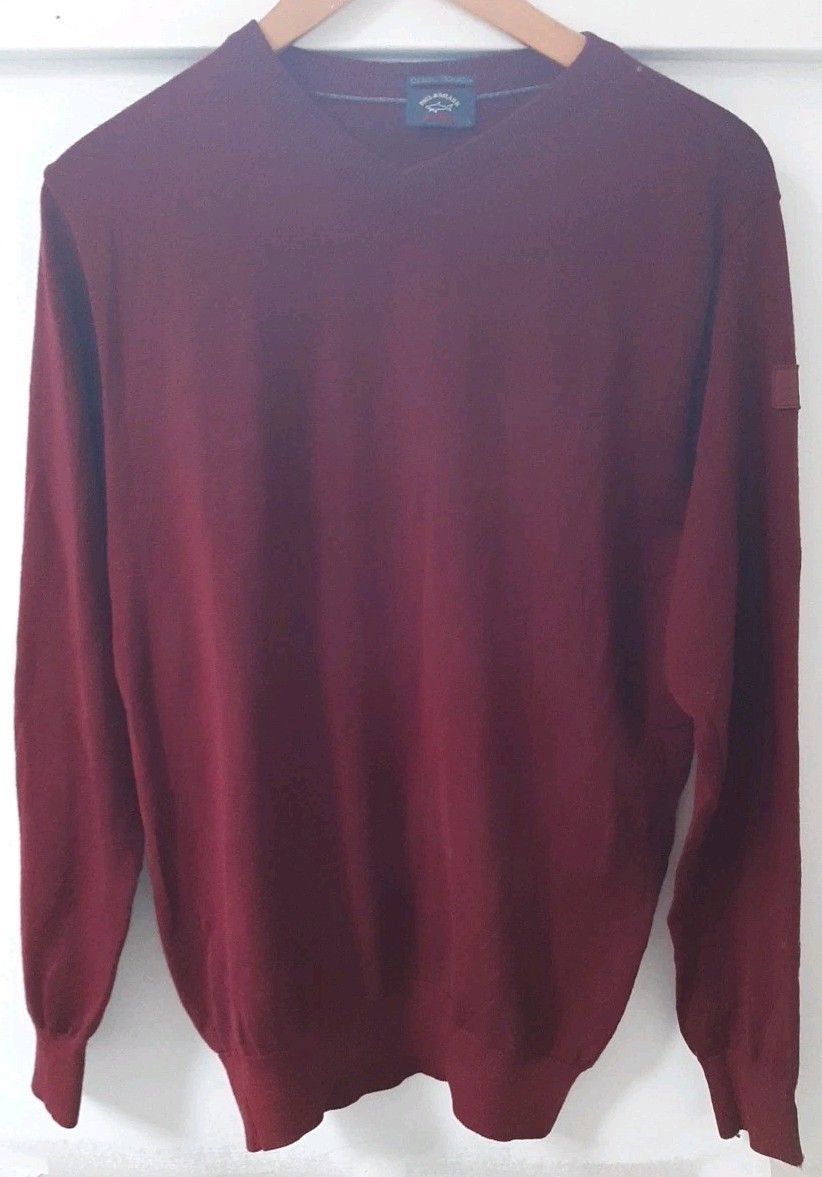 Paul Shark Yachting Cool Touch Wool V-Neck Sweater Burgundy Men?s Size L Italy