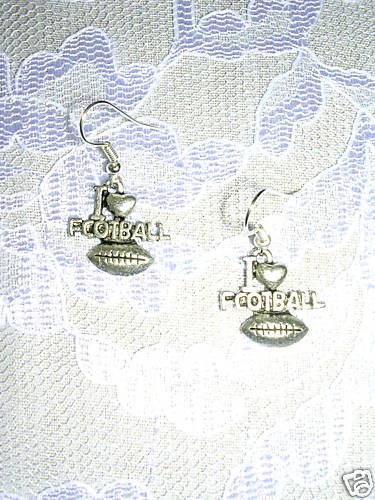 THEY ARE OUR NEW FUN FABULOUS - I LOVE FOOTBALL - DANGLING EARRINGS - I HEART FOOTBALL WITH A CUTE FOOTBALL UNDERNEATH