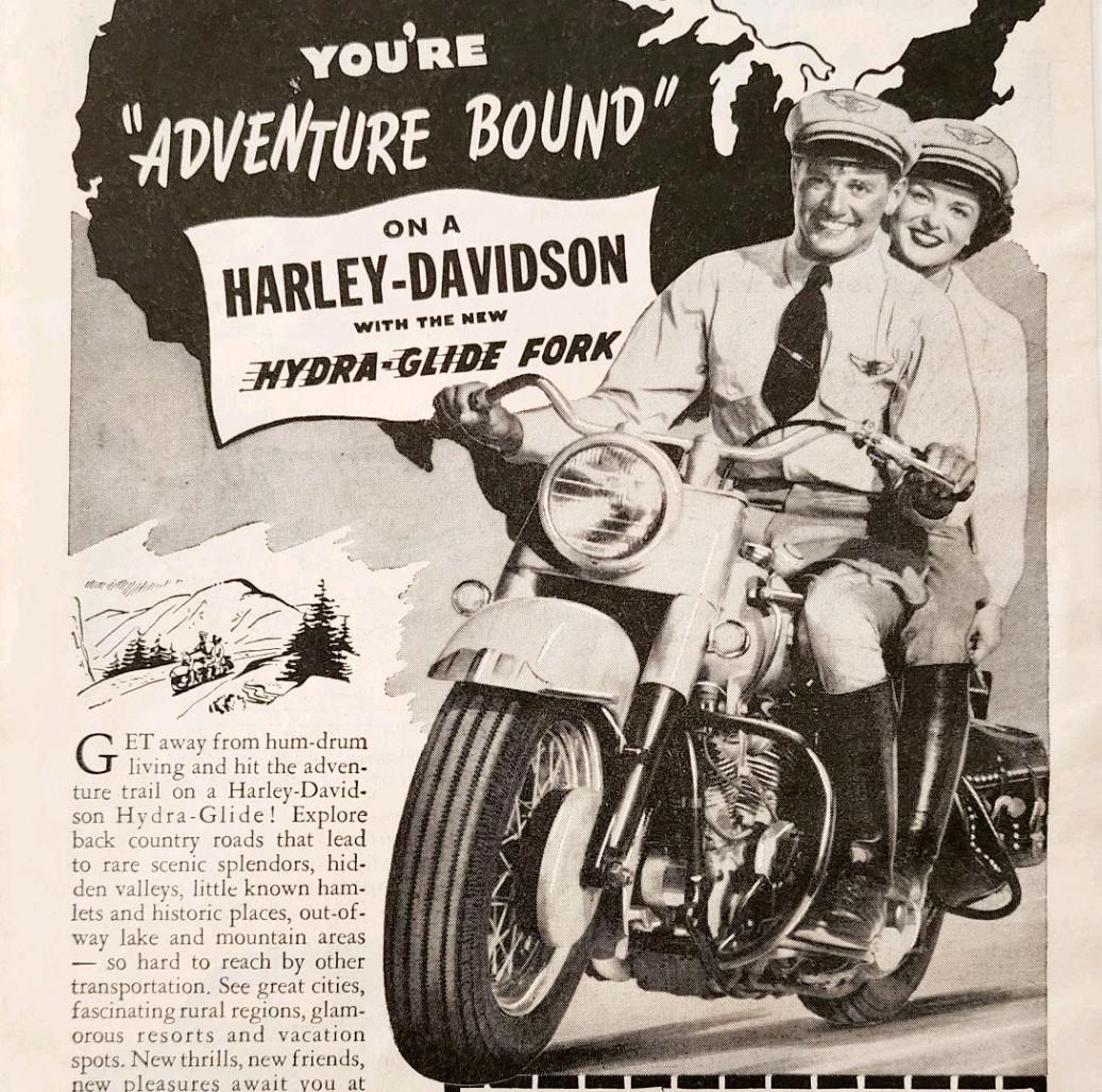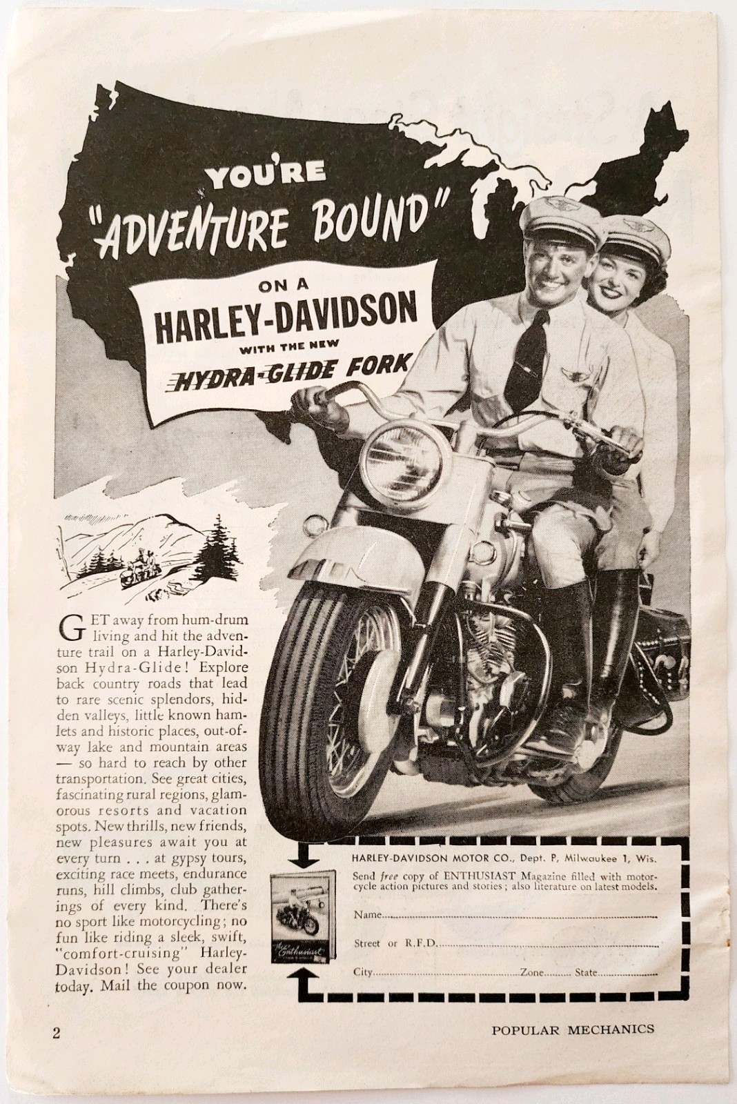 1949 Harley Davidson Hydra-Glide Motorcycle Advertisement Automobilia Vtg E8P