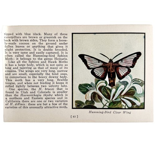 Hummingbird Clear Wing Moth 1934 Butterflies America Antique Insect Art PCBG14A