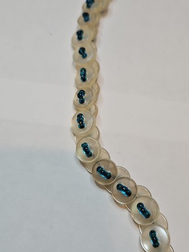 Long Clear Button Design Blue Rope Necklace , 27'' Length Vintage