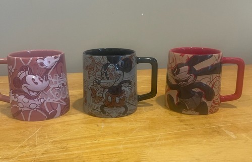 Disney Store Mickey Mouse Minnie Oswald Coffee Mugs 3D Raised Comic Strip