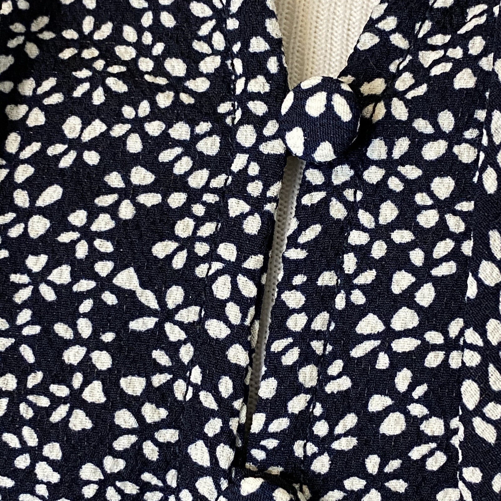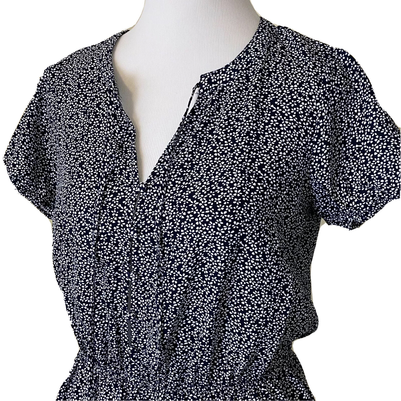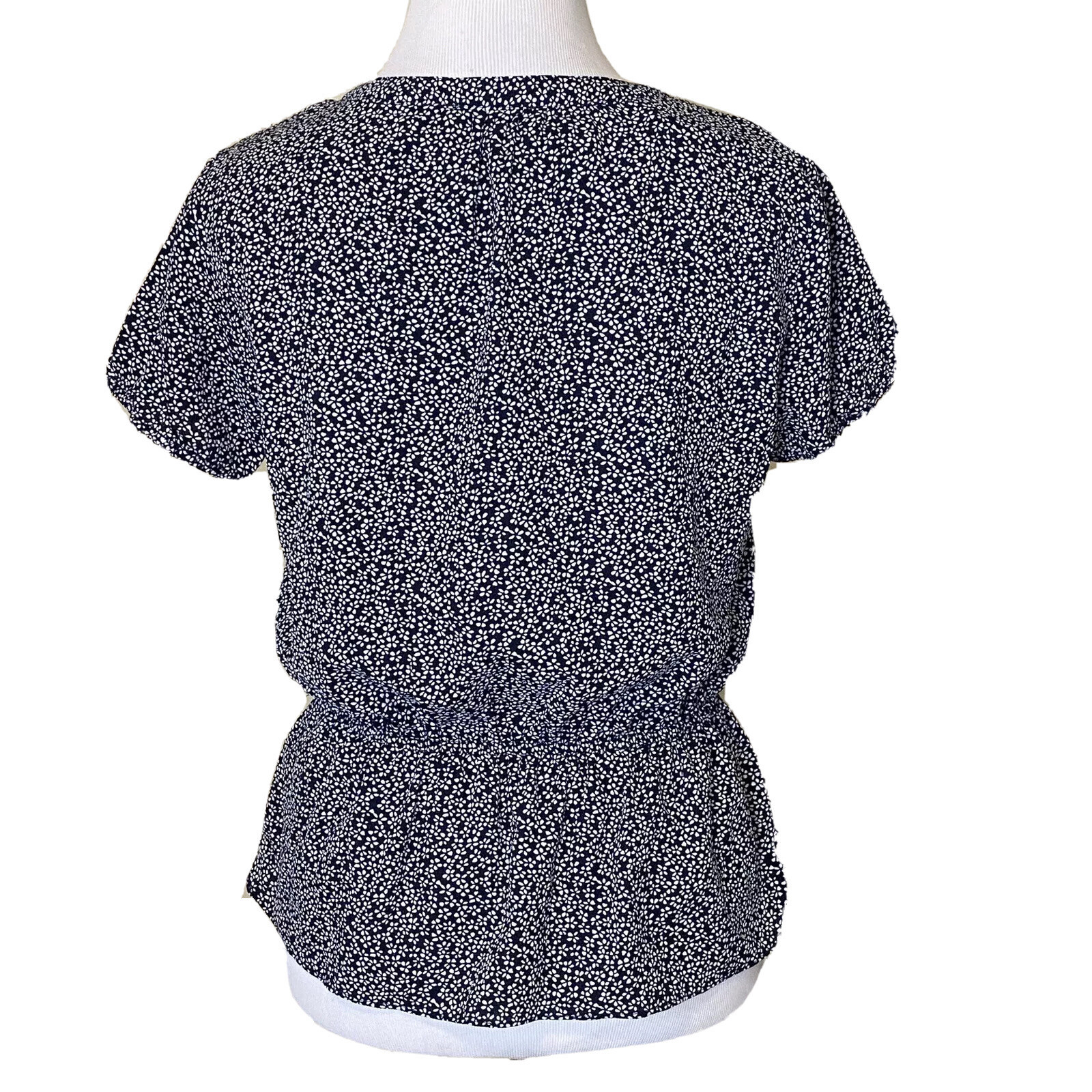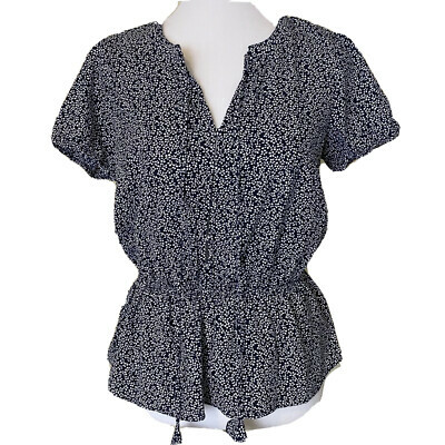 New & Layered Blouse Womens XS Keyhole Puff Sleeve Peplum Navy White Mini Daisy