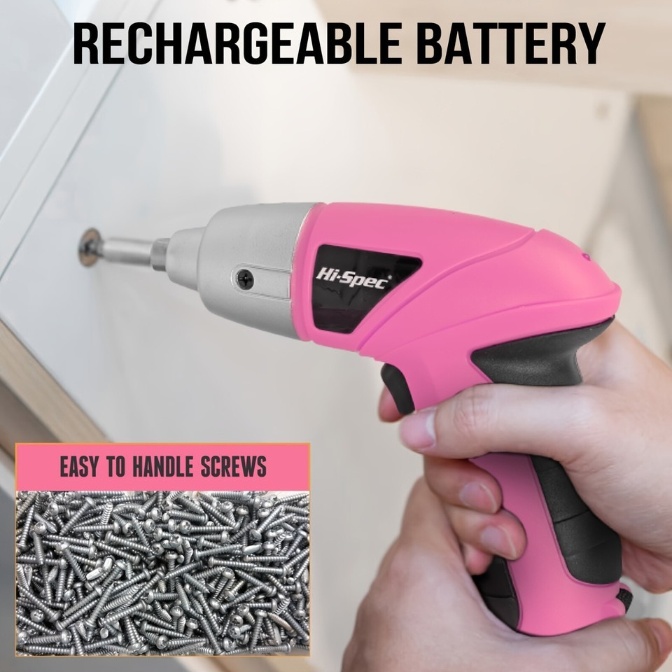 Hi-Spec 3.6V Pink Cordless Electric Tool Kit ? Rechargeable Ready for DIY!