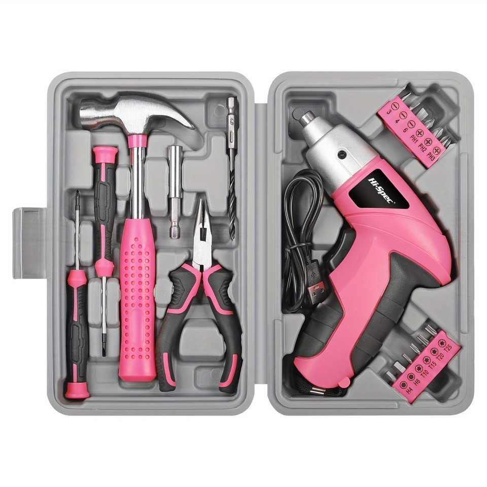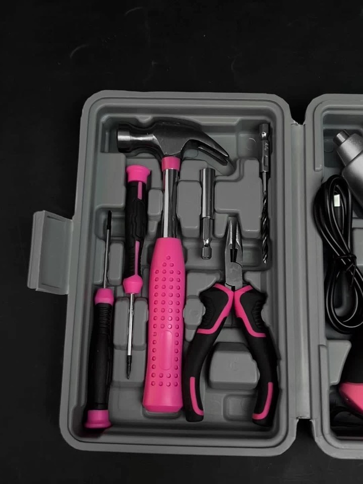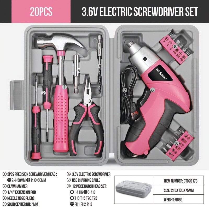 Pink 3.6V Cordless Electric Tool Kit with Box – DIY Repair Set Gift for Women