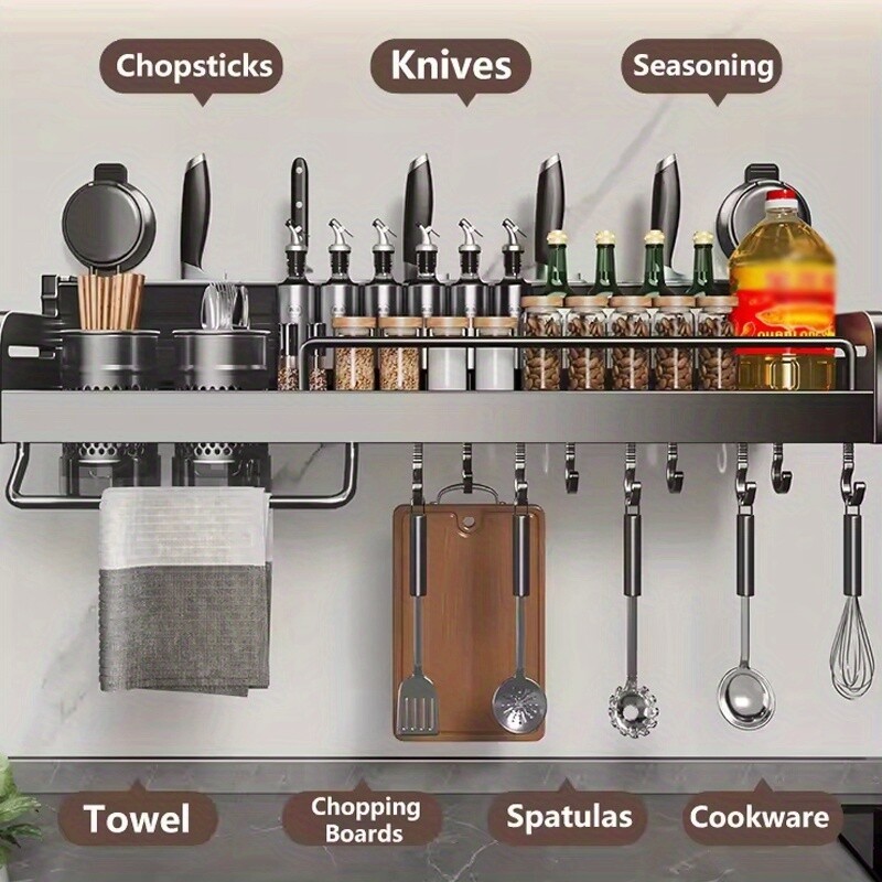 Metal Hanging Spice Rack With Hooks, No Drilling Required, Easy-to-clean Modern Kitchen Storage Utensil Rack, Saves Space In Kitchen Storage And Organization, Ideal Mother'S Day Gift, Home Chopstick Knife Holder Spice Jar Organizer, Utility Racks