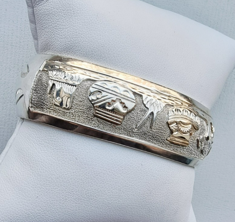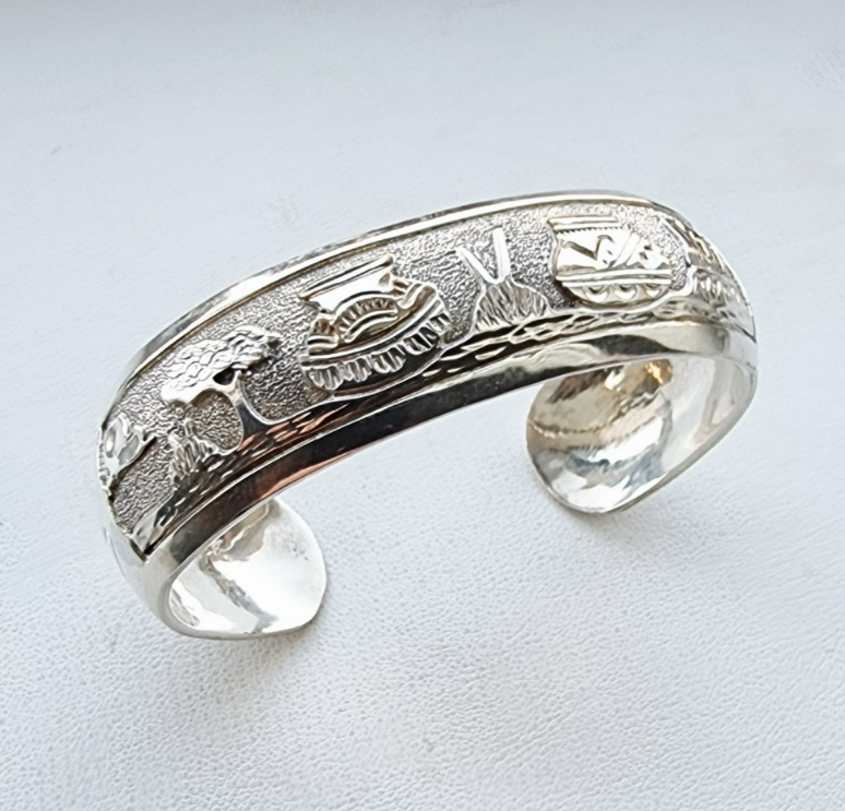 WILSON TSOSIE NAVAJO 925 STERLING SILVER STORYTELLER CUFF BRACELET 38g
