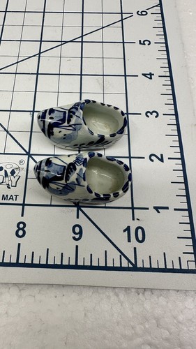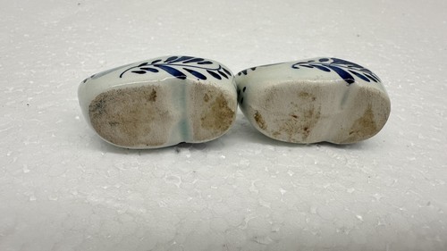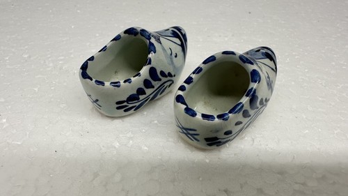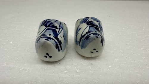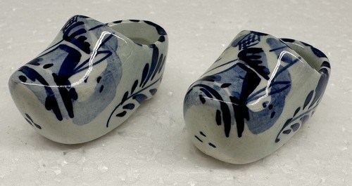 This charming miniature set features two hand-painted Dutch clogs with windmills with blue and white. The intricate details on the porcelain and ceramic material make this a perfect addition to any collector's collection. The windmills are part of the Delft style and are perfect for all occasions.