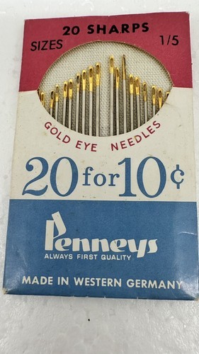 VTG 20 Sharps Gold Eye Needles JC Penny W Germany