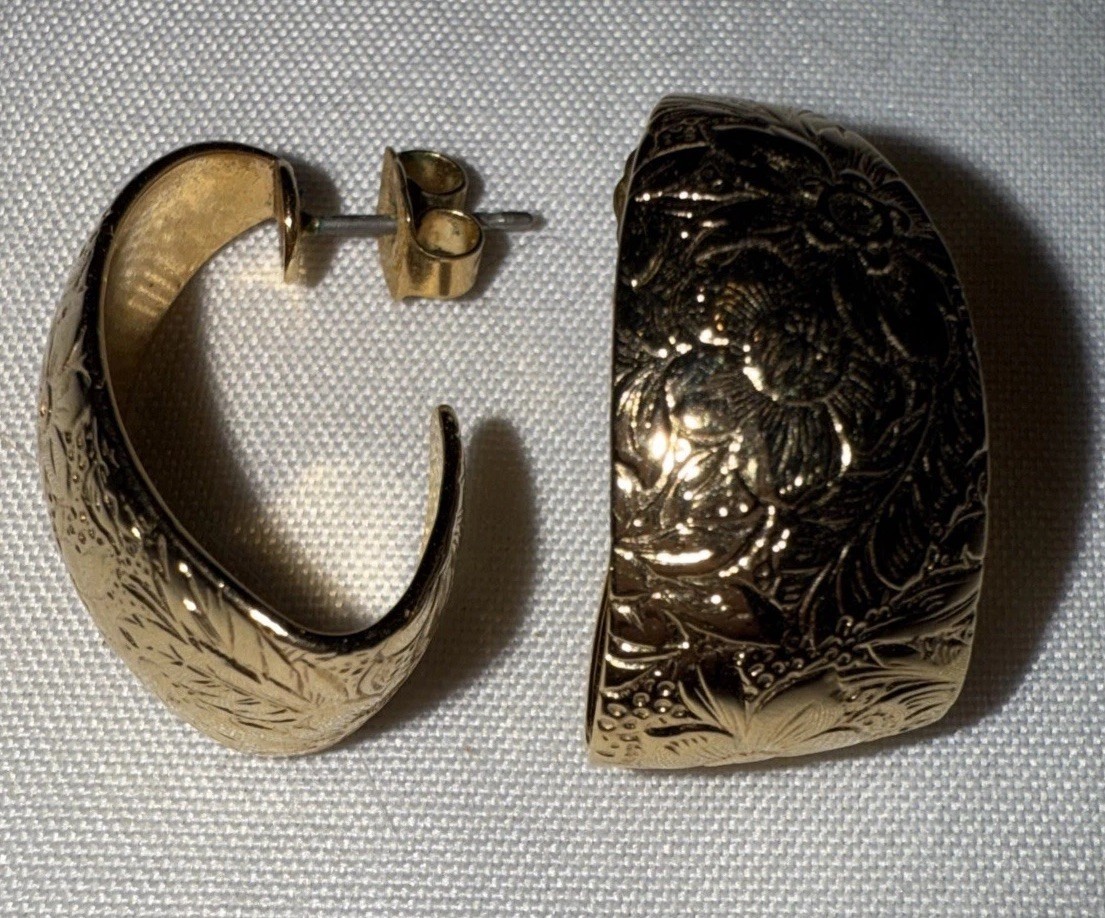 Gold tone Embossed texture Hoop Pierced and 14 similar items