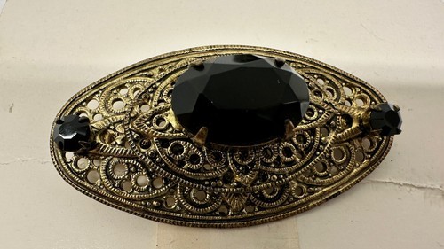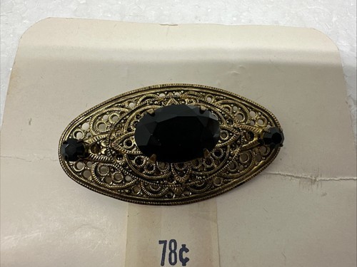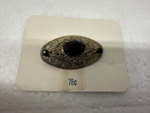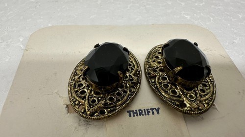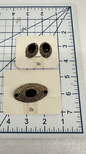 These vintage Thrifty Costume Jewelry earrings and brooch are the perfect addition to any fashion jewelry collection. The black faux onyx stones give a classic and timeless look that can be worn with any outfit. The clip style and undated era make these earrings a versatile accessory that can be worn for any occasion.